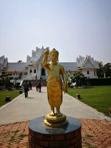 到了东区,可以看到最北端的是泰国寺院。泰国寺院是国家建设的,常住由国家委托僧王派遣,也常有国家重要人物到访该寺。泰国寺院往往金光闪闪,但是这座寺院通体白色,不失为一大特色。
