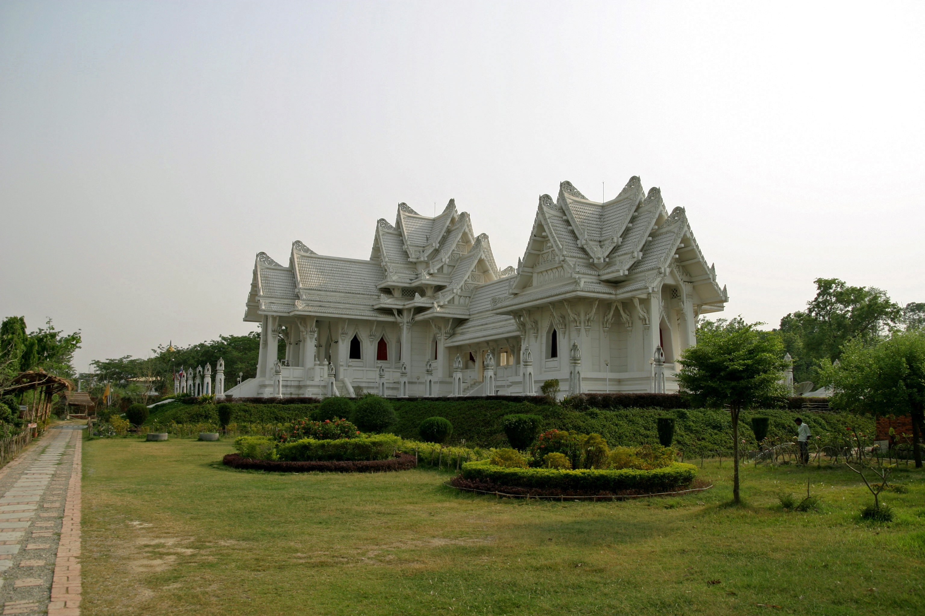到了东区,可以看到最北端的是泰国寺院。泰国寺院是国家建设的,常住由国家委托僧王派遣,也常有国家重要人物到访该寺。泰国寺院往往金光闪闪,但是这座寺院通体白色,不失为一大特色。