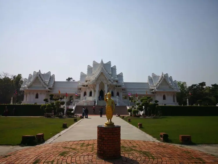 到了东区,可以看到最北端的是泰国寺院。泰国寺院是国家建设的,常住由国家委托僧王派遣,也常有国家重要人物到访该寺。泰国寺院往往金光闪闪,但是这座寺院通体白色,不失为一大特色。