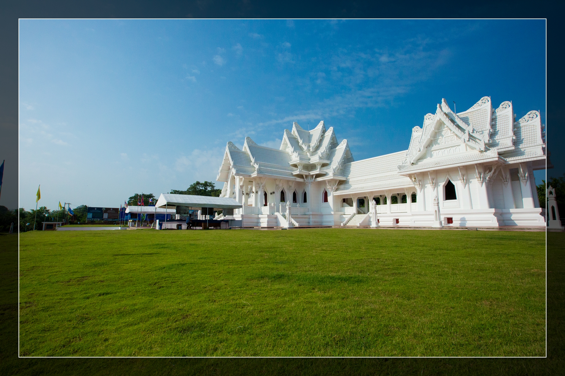 到了东区,可以看到最北端的是泰国寺院。泰国寺院是国家建设的,常住由国家委托僧王派遣,也常有国家重要人物到访该寺。泰国寺院往往金光闪闪,但是这座寺院通体白色,不失为一大特色。