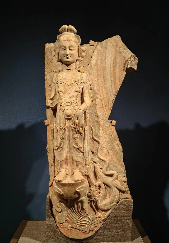 山东.青州.龙兴寺.石雕造像.贴金彩绘右胁侍菩萨像(东魏)