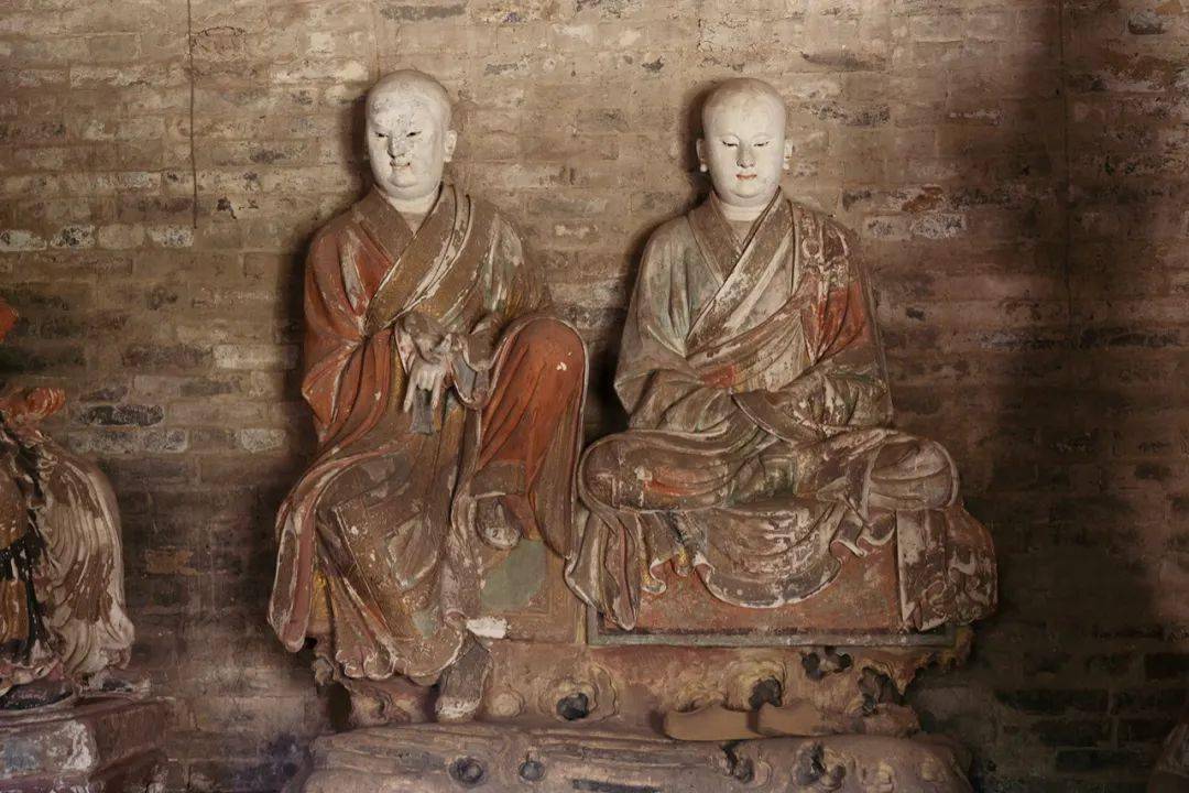 十八罗汉塑于北宋元丰二年(1079年),形态表情各异,或丰满,或清瘦,眉眼表情或夸张或内敛,生动传神,姿态或沉静或奔放,气质或雅或拙,各具品格。罗汉像细腻精致的纹饰里渗透着宋代雕塑艺术的经典装饰风格,为我国佛教文化发展史和雕塑史上难得的珍品。 在佛坛前沿砖雕束腰处,留有两方刻字,铭记着造像年代及布施者姓名,证实了塑像制作的确切年代。