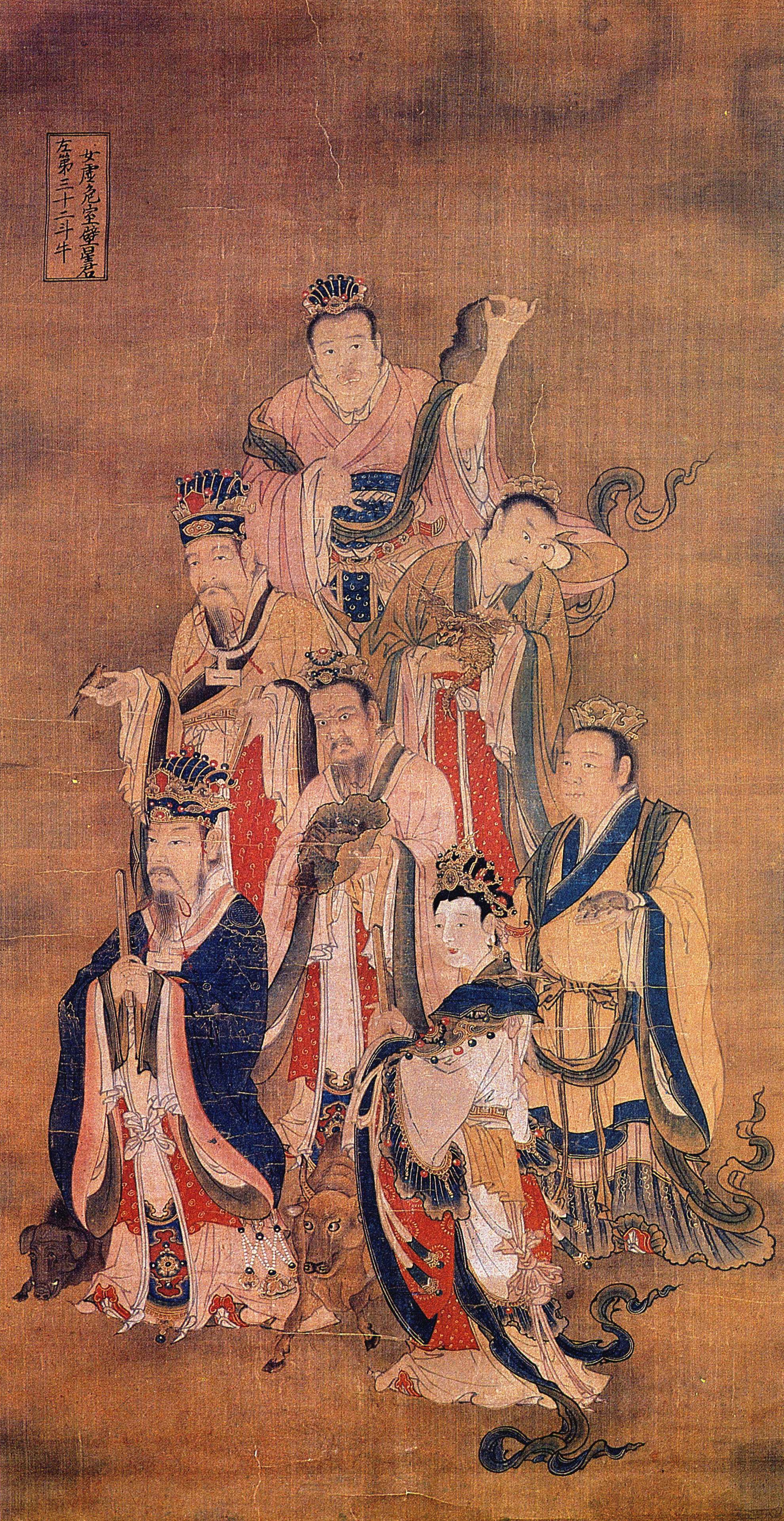 此画为二十八宿第二幅画一北方七宿,即: 斗蟹、牛牛、女蝠、虚鼠、 危燕、室猪、壁㺄。画六男一女,六男俱长袍