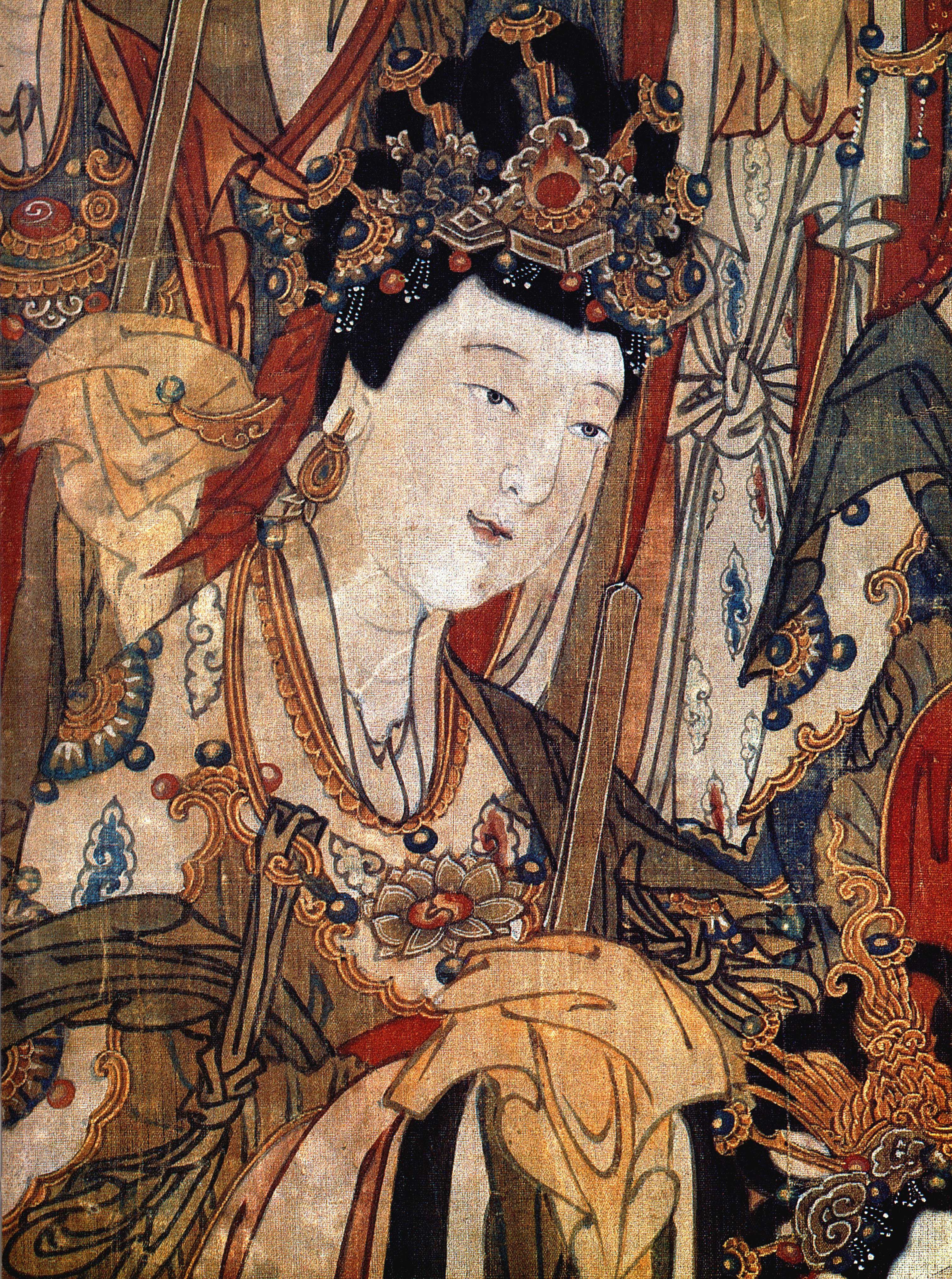 此画为九天与后土圣母合绘之图。画中十妇女像,名为神众,实则为人间贵族妇女的写照。所着衣饰均极华丽,虽属盛装,但神情自然,体态轻盈,风姿袅娜。