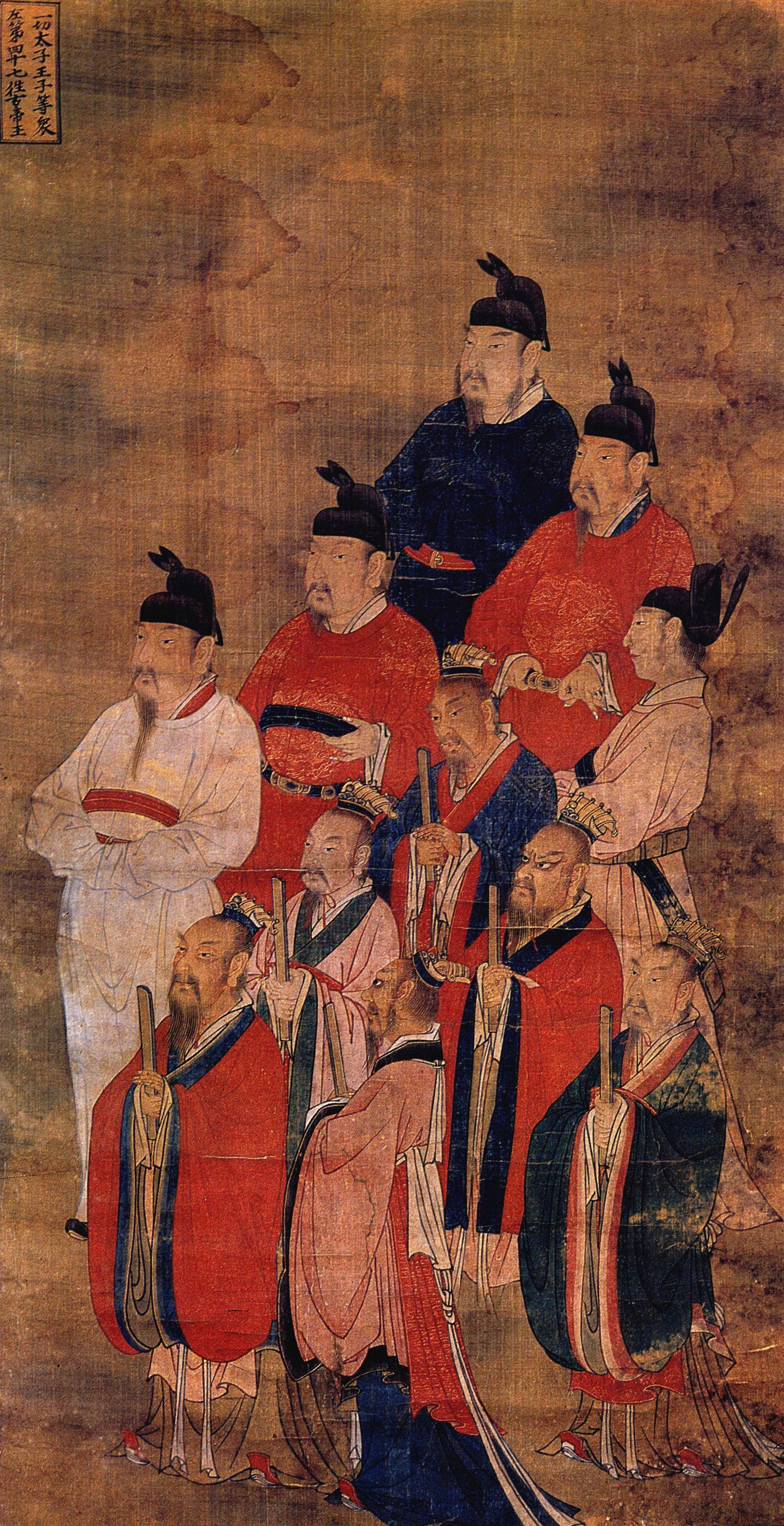 画中十一人, 从服饰看, 前六人为帝王, 后五人为太子王子。