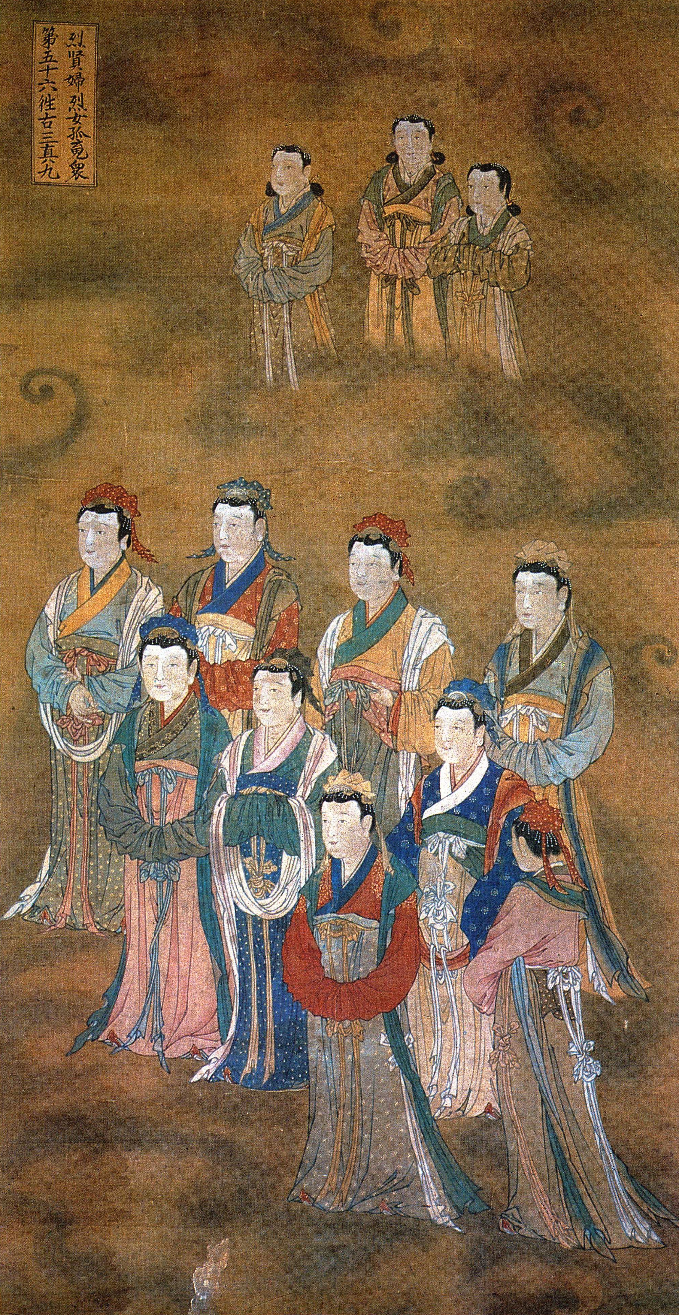 往古社会十分重视所谓妇女贞节方面的题材。 这幅画画工极讲究。