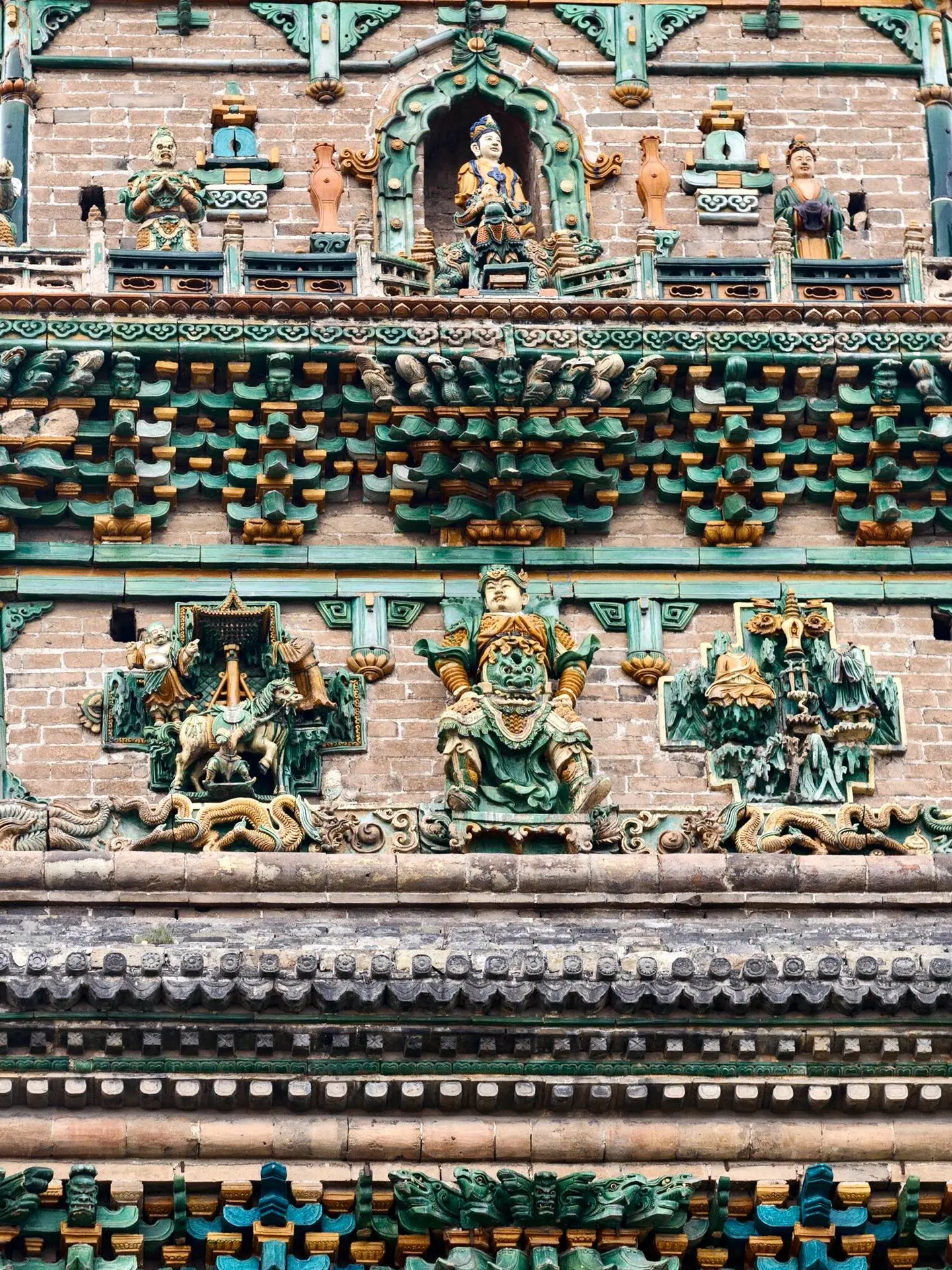 飞虹塔,位于山西省洪洞县的广胜寺景区内,其前身是始建于东汉建和元年(147年)的阿育王塔,即佛祖舍利塔,唐大历四年(769年)扩建。明正德十年(1515年)重建,现塔为明嘉靖六年(1527年)建成,明天启二年(1622年)塔身加装琉璃。