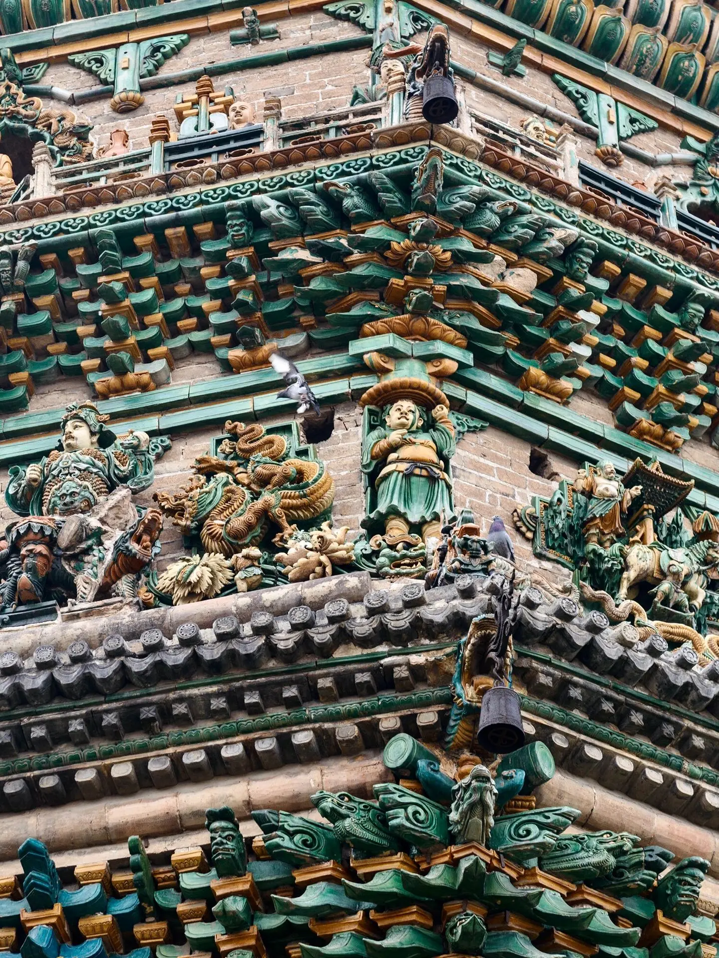 飞虹塔,位于山西省洪洞县的广胜寺景区内,其前身是始建于东汉建和元年(147年)的阿育王塔,即佛祖舍利塔,唐大历四年(769年)扩建。明正德十年(1515年)重建,现塔为明嘉靖六年(1527年)建成,明天启二年(1622年)塔身加装琉璃。