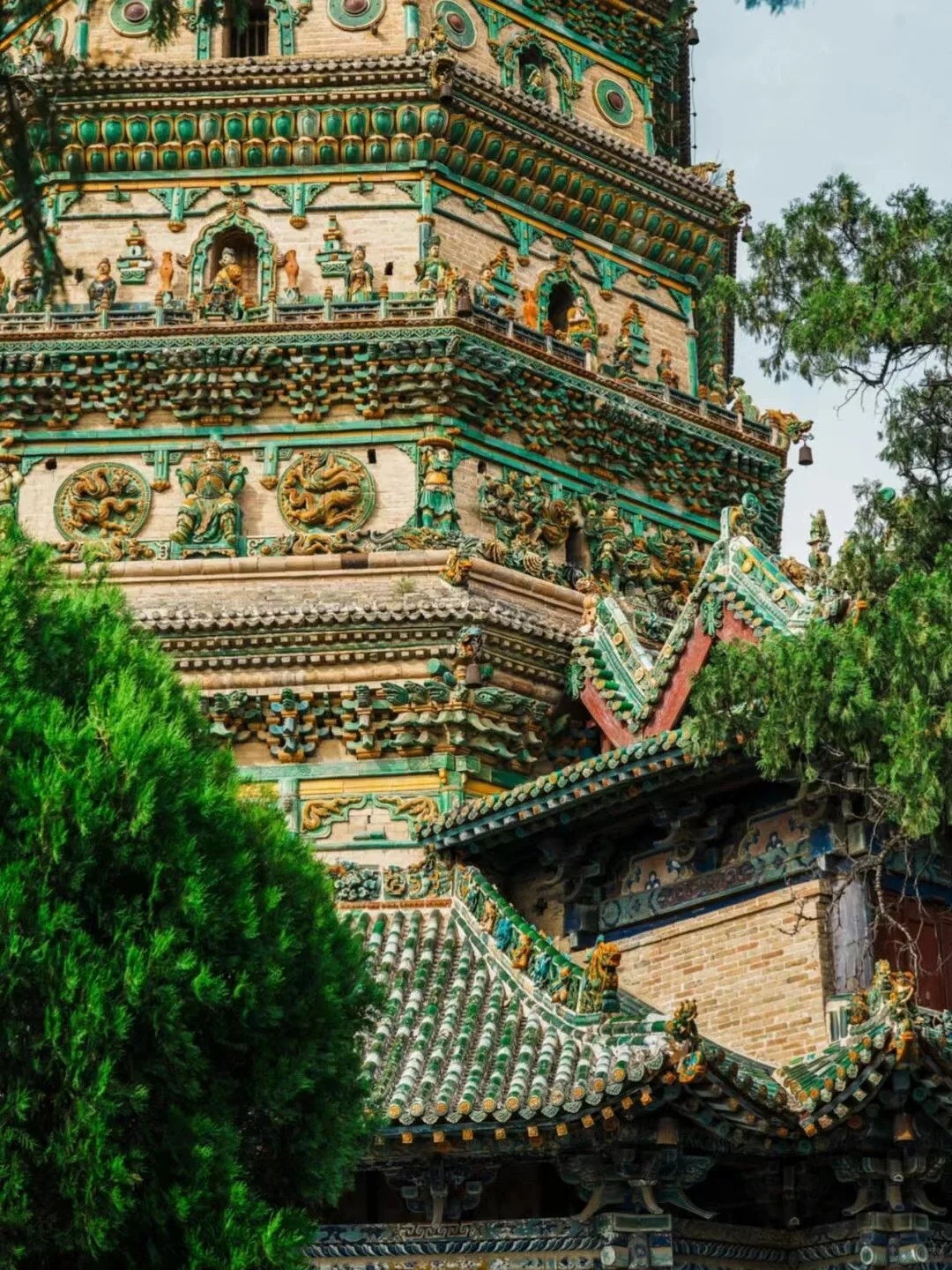 飞虹塔,位于山西省洪洞县的广胜寺景区内,其前身是始建于东汉建和元年(147年)的阿育王塔,即佛祖舍利塔,唐大历四年(769年)扩建。明正德十年(1515年)重建,现塔为明嘉靖六年(1527年)建成,明天启二年(1622年)塔身加装琉璃。