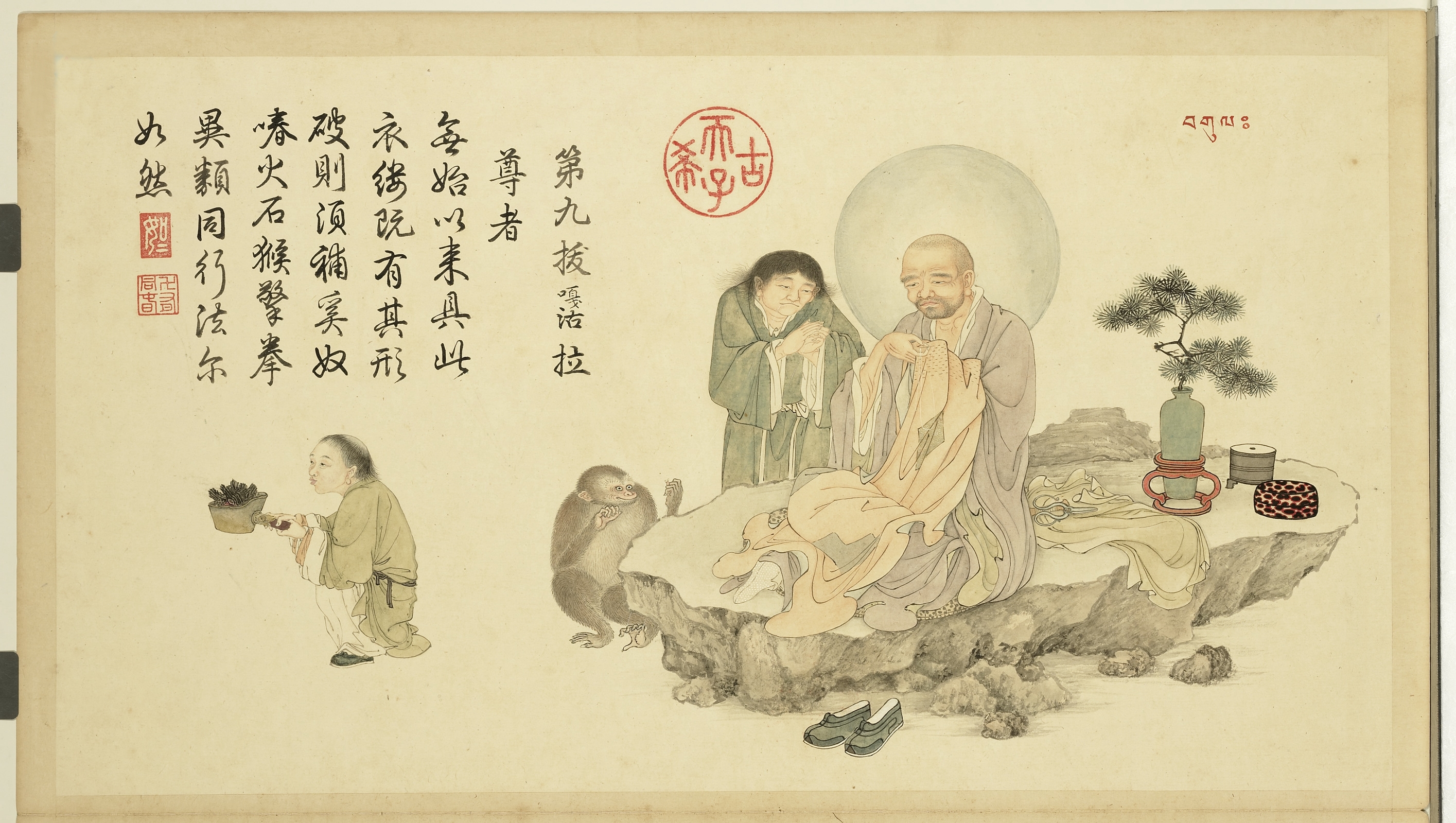 明代,贯休《十六罗汉像》尚有流传,也就在清初,传卢楞伽《六尊者像》册、贯休《十六罗汉像》八轴进入宫廷。