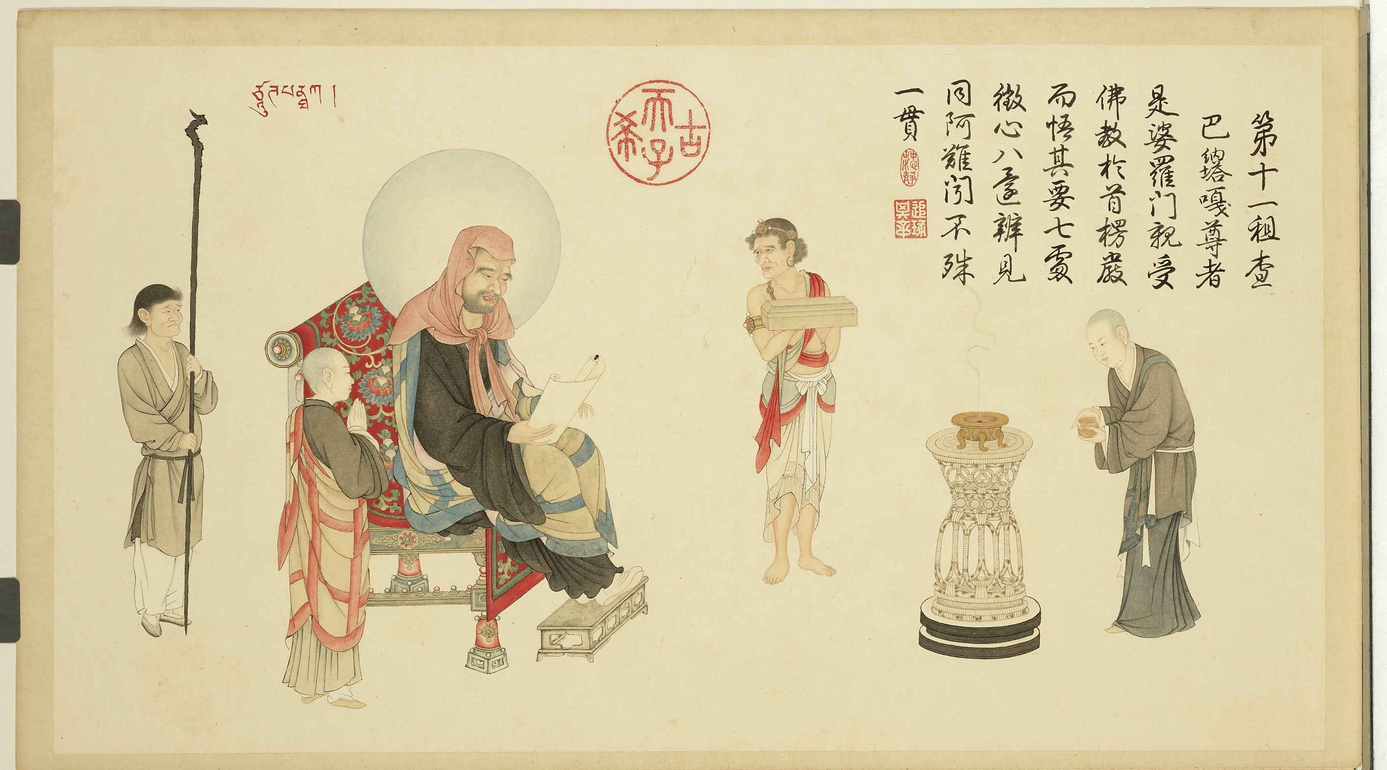 明代,贯休《十六罗汉像》尚有流传,也就在清初,传卢楞伽《六尊者像》册、贯休《十六罗汉像》八轴进入宫廷。