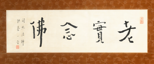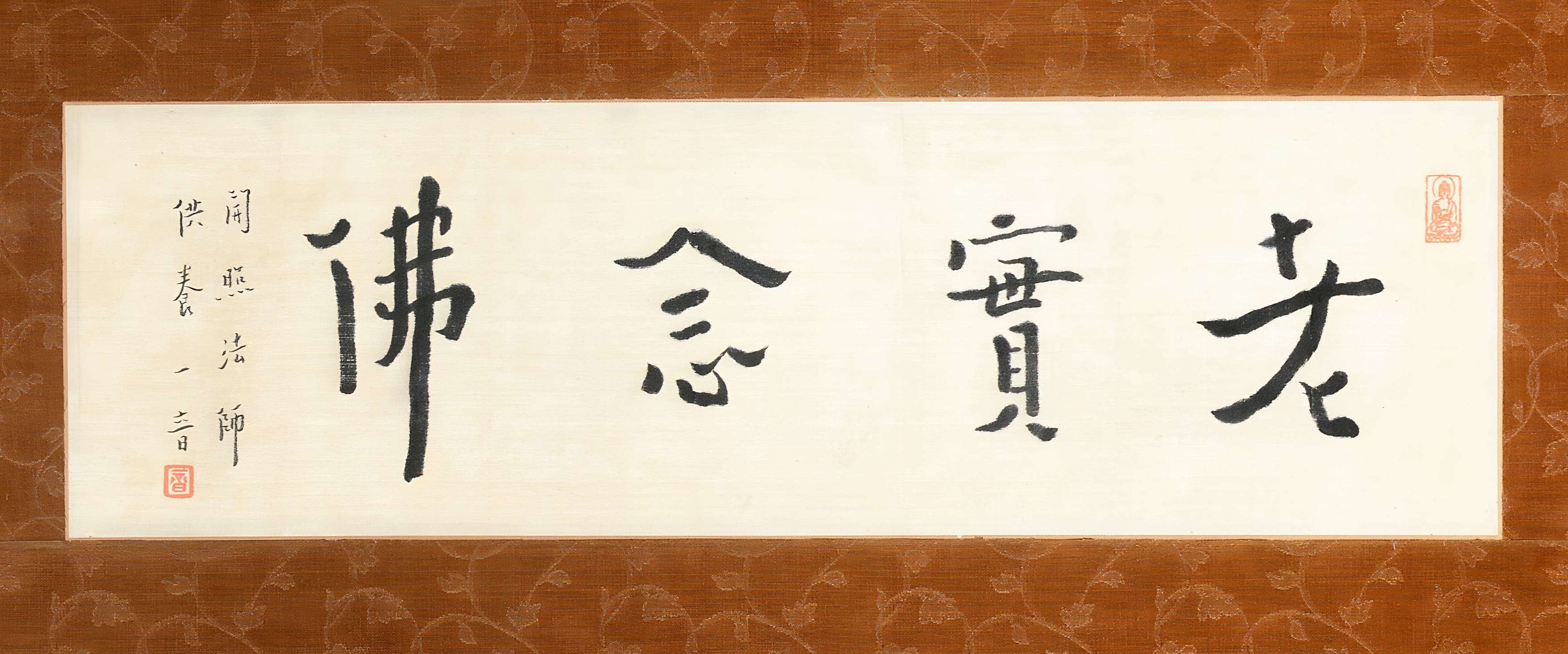 弘一法师作行书『老实念佛』民国时期日式装裱-水墨绢本_3510x1464_meet.fo