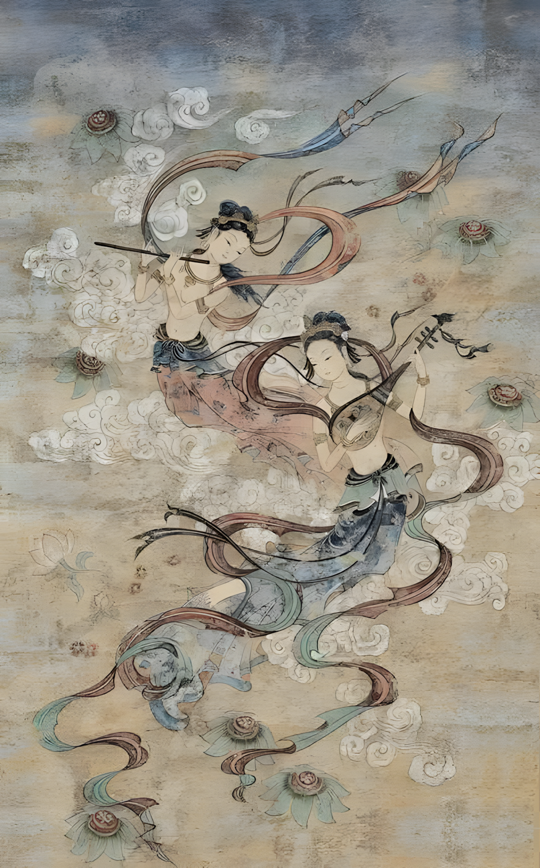 敦煌壁画:怀抱琵琶的飞天女_1064x1708_meet.fo