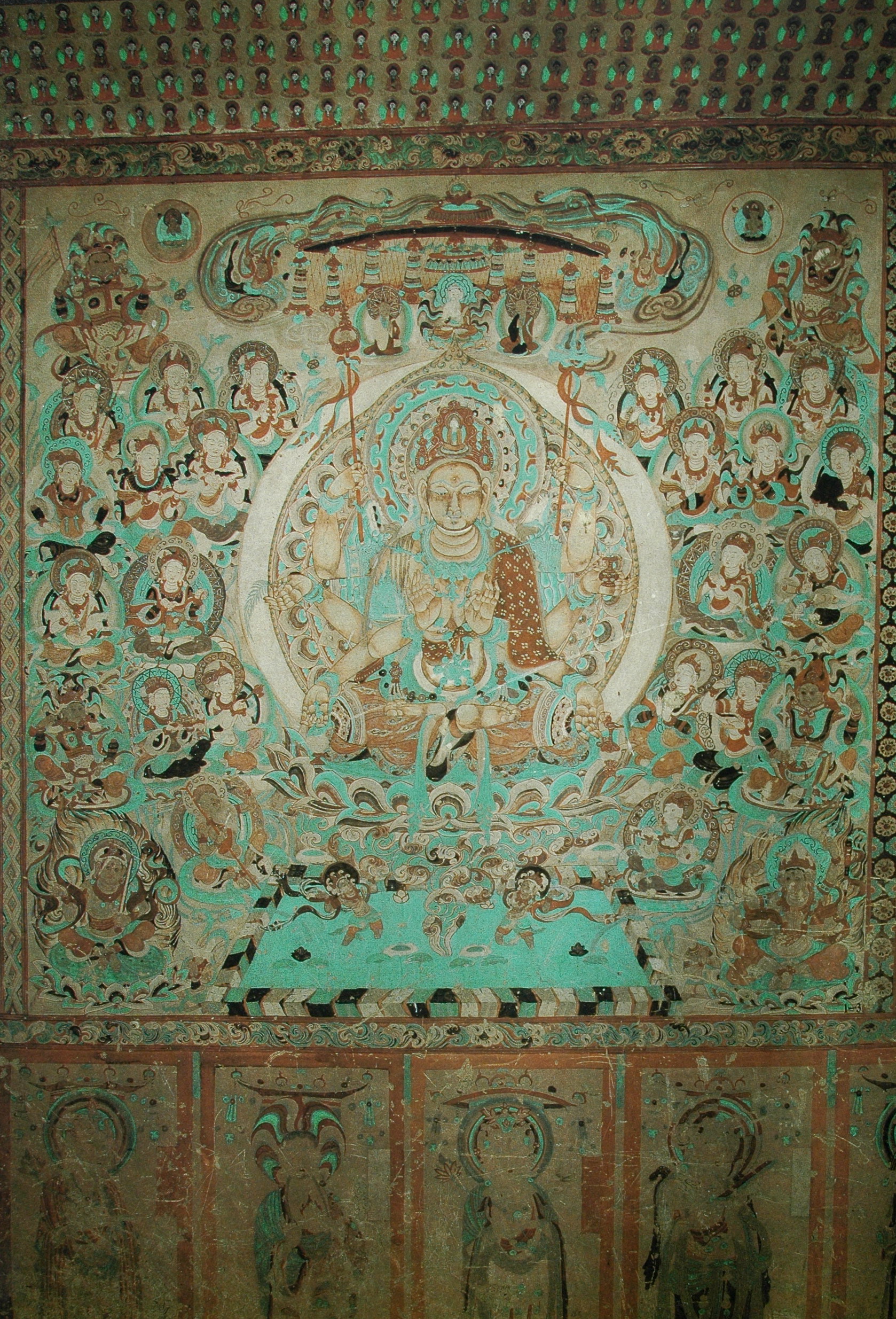 敦煌石窟一名通常用以指莫高窟,是莫高窟、西千佛洞的总称,有时也包括安西的榆林窟。敦煌石窟与山西大同云冈石窟、河南洛阳龙门石窟并称中国三大石窟。1961年国务院公布莫高窟、榆林窟为全国重点文物保护单位。1987年,莫高窟作为文化遗产被列入《世界遗产名录》。