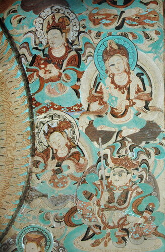 莫高窟,坐落于河西走廊的西部尽头的敦煌。它的开凿从十六国时期至元代,前后延续约1000年,这在中国石窟中绝无仅有。它既是中国古代文明的一个璀璨的艺术宝库,也是古代丝绸之路上曾经发生过的不同文明之间对话和交流的重要见证。莫高窟现有洞窟735个,保存壁画4.5万多平方米,彩塑2400余尊,唐宋木构窟檐5座,是中国石窟艺术发展演变的一个缩影,在石窟艺术中享有崇高的历史地位。窟内绘、塑佛像及佛典内容,为佛徒修行、观像、礼拜处所。敦煌石窟是建筑、雕塑、壁画三者结合的立体艺术。 [8]洞窟分南北两区:南区492个洞窟是莫高窟礼佛活动的场所,北区243个洞窟主要是僧人和工匠的居住地,内有修行和生活设施土炕坑、烟道、壁龛、灯台等,但多无彩塑和壁画。 [2]