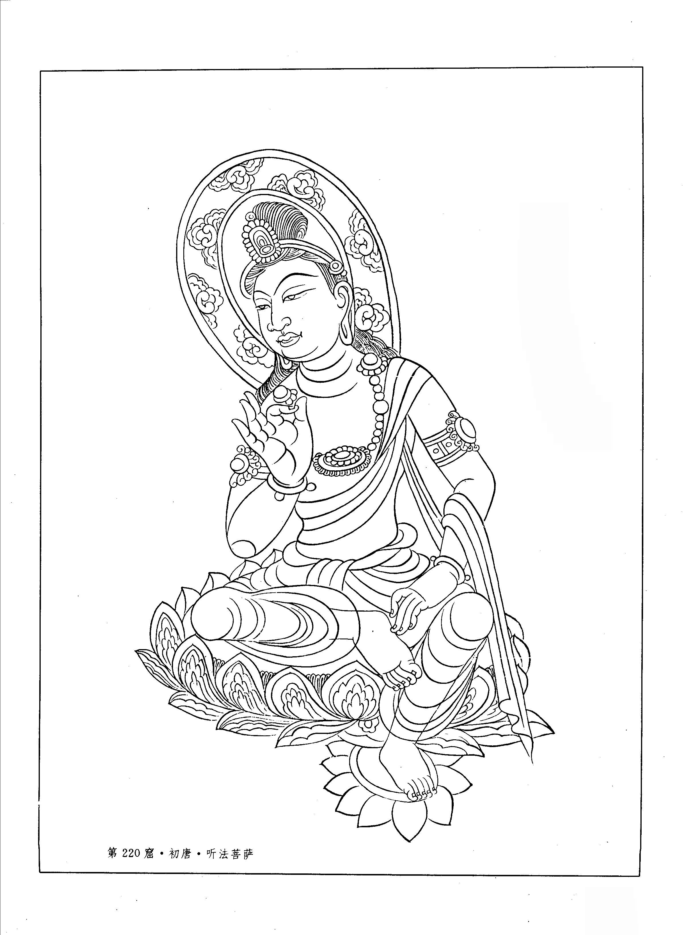敦煌菩萨白描图集.031.第220窟.初唐.听法菩萨