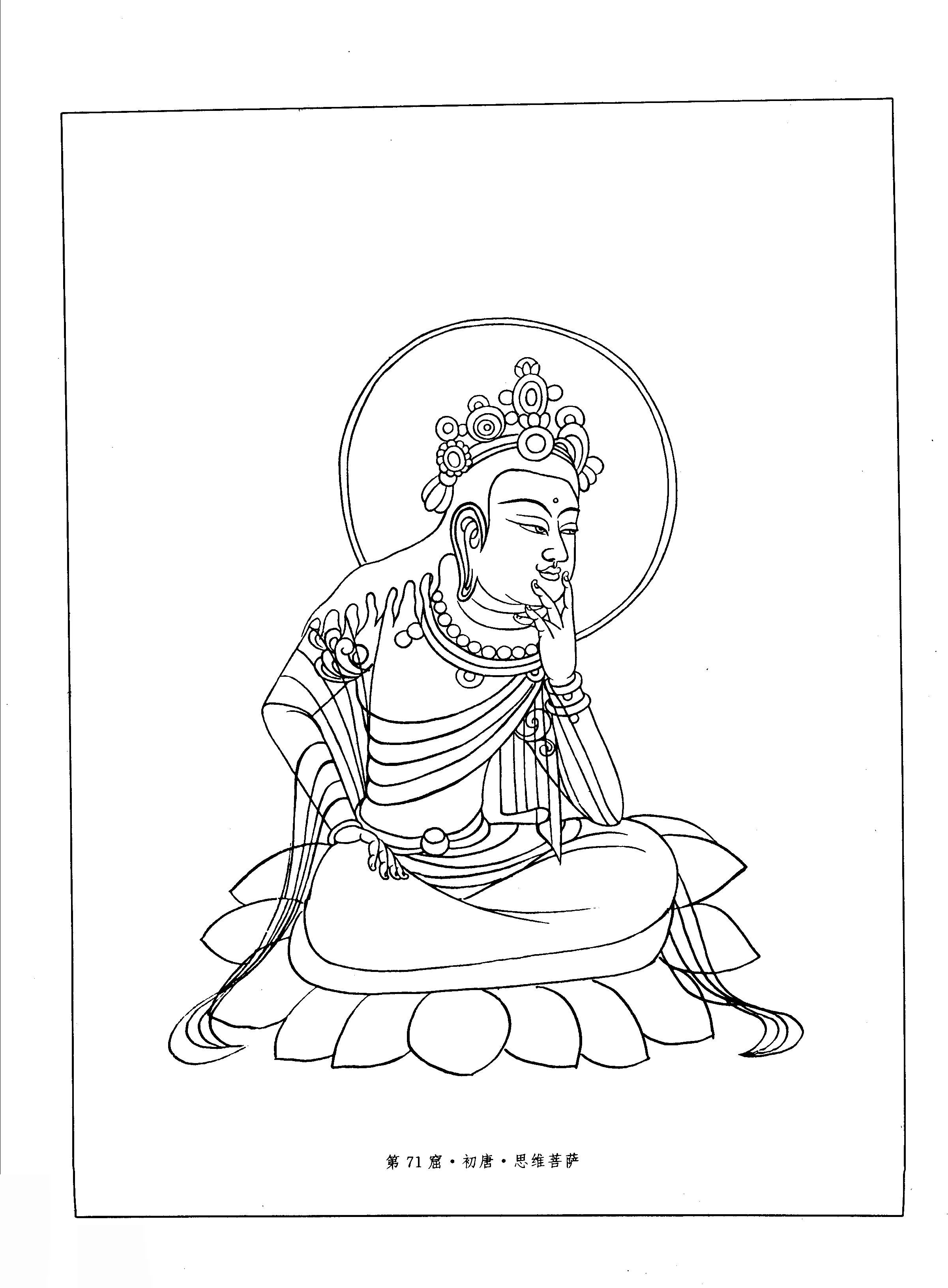 敦煌菩萨白描图集.044.第71窟.初唐.思维菩萨
