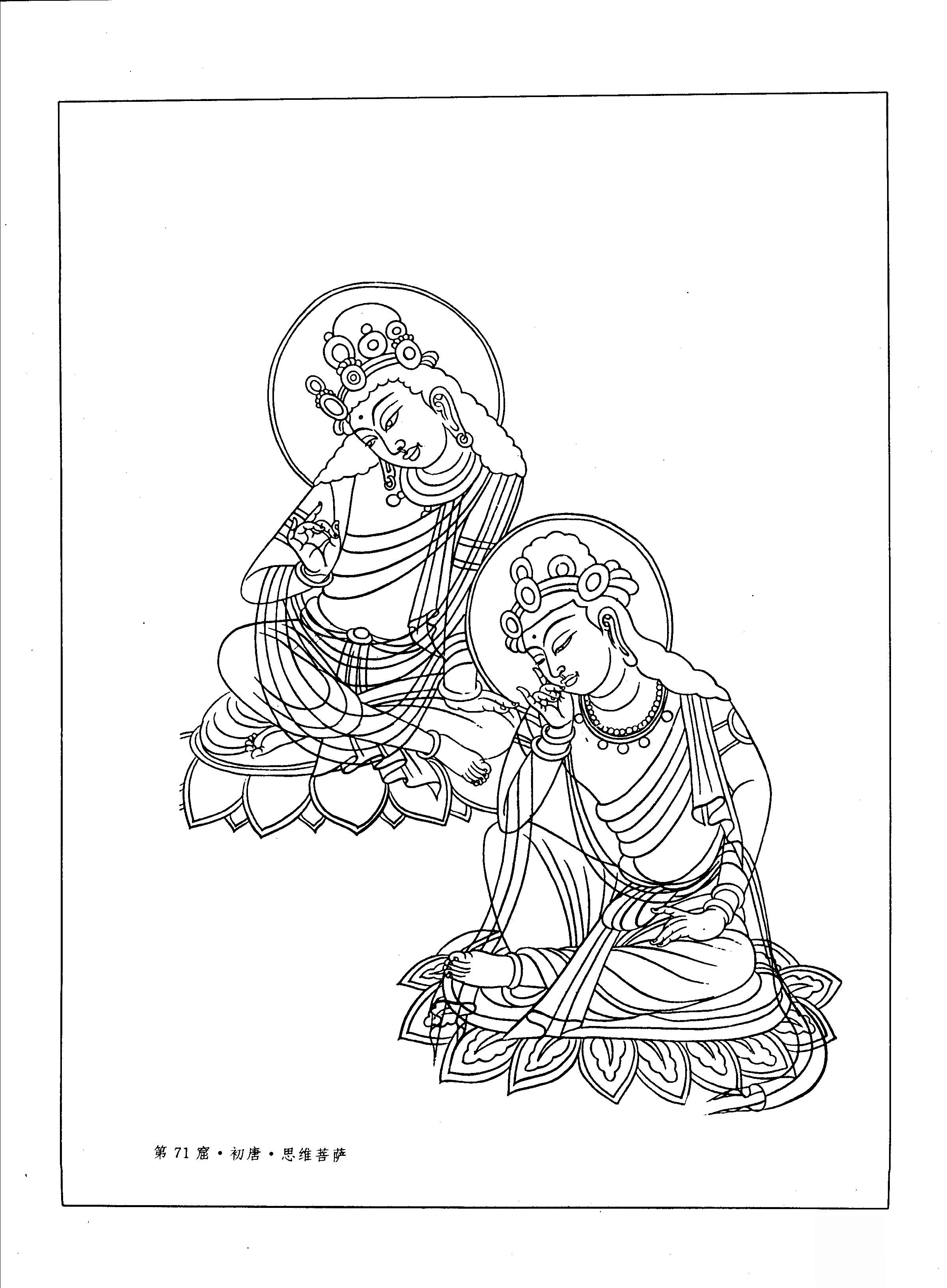 敦煌菩萨白描图集.045.第71窟.初唐.思维菩萨