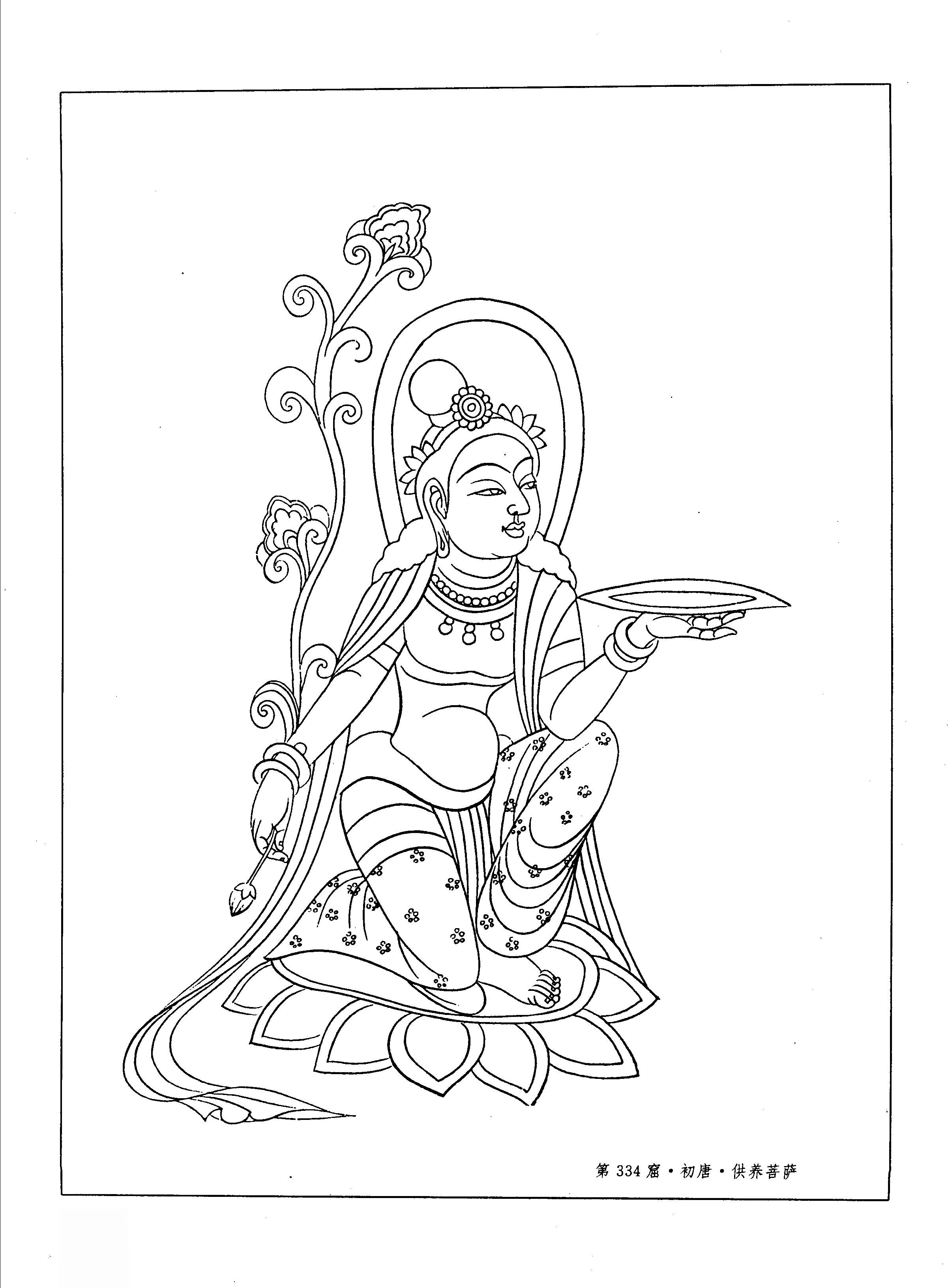 敦煌菩萨白描图集.048.第334窟.初唐.供养菩萨