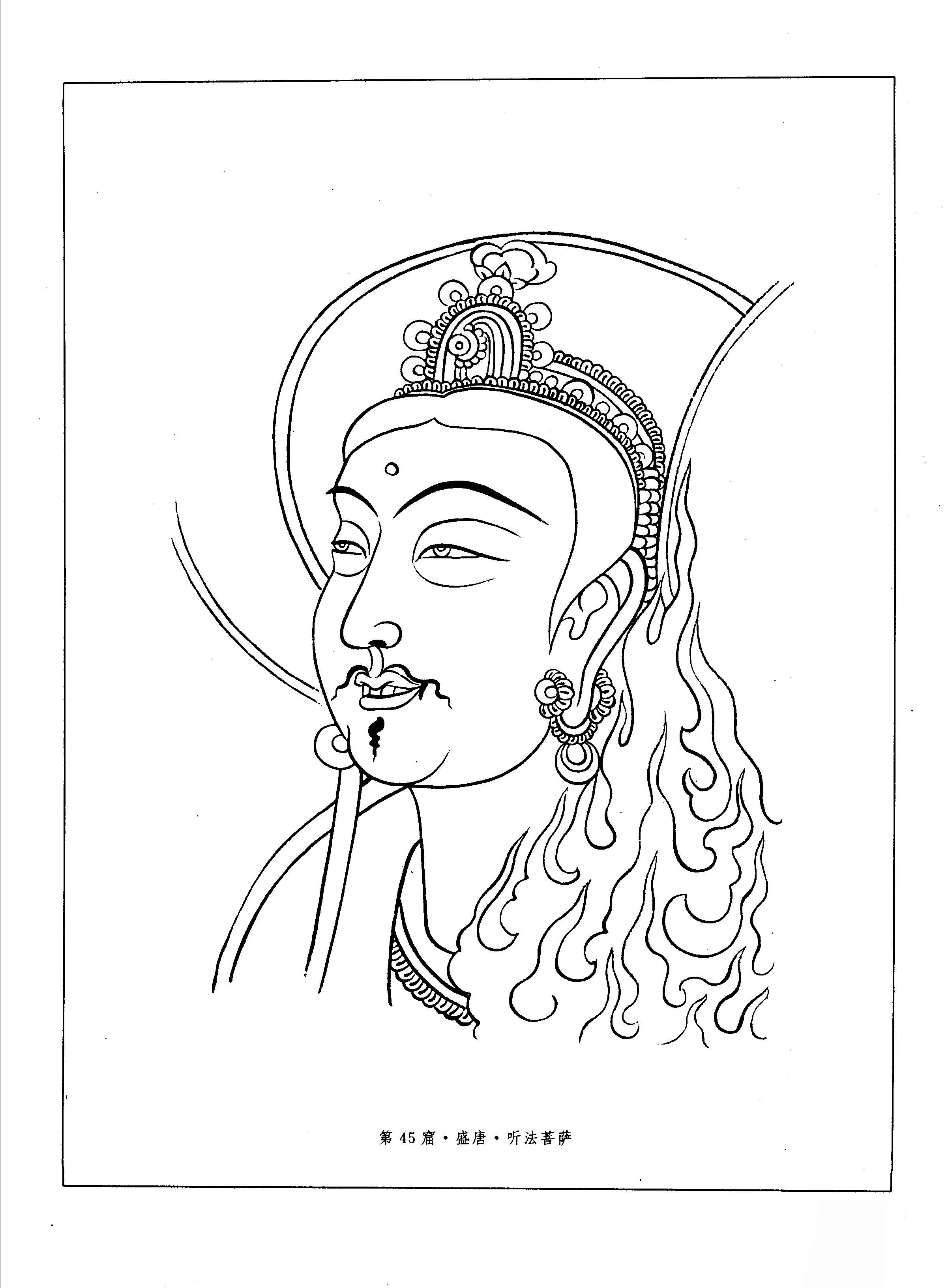 敦煌菩萨白描图集.067.第45窟.盛唐.听法菩萨