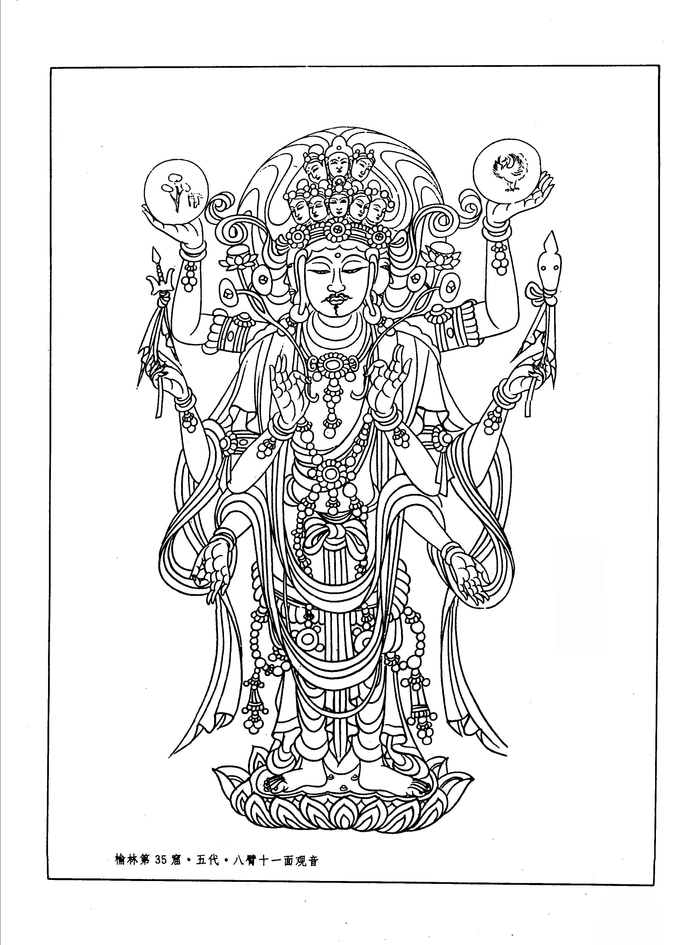 敦煌菩萨白描图集.105.榆林第35窟.五代.八臂十一面观音