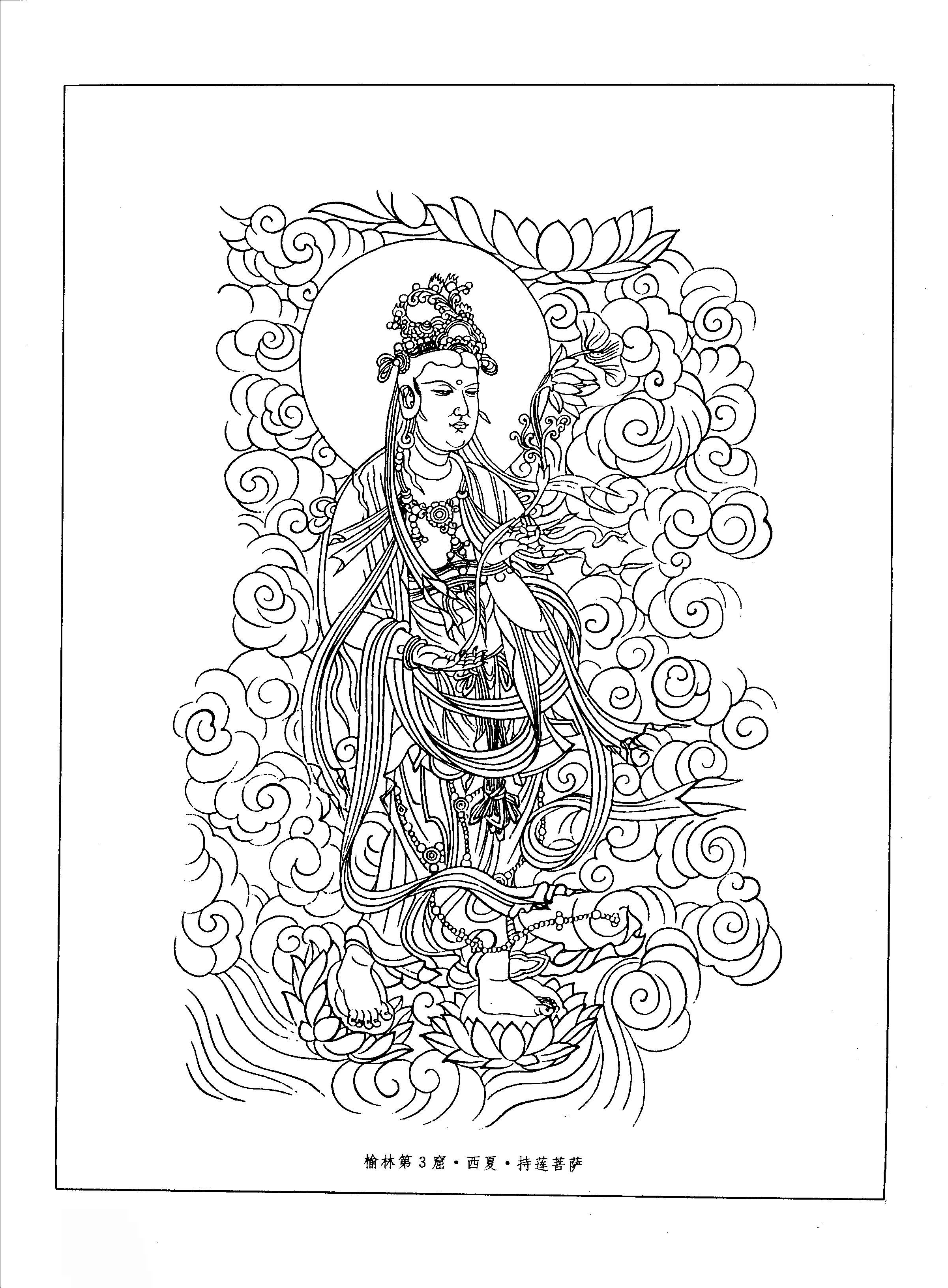 敦煌菩萨白描图集.110.榆林第3窟.西夏.持莲菩萨