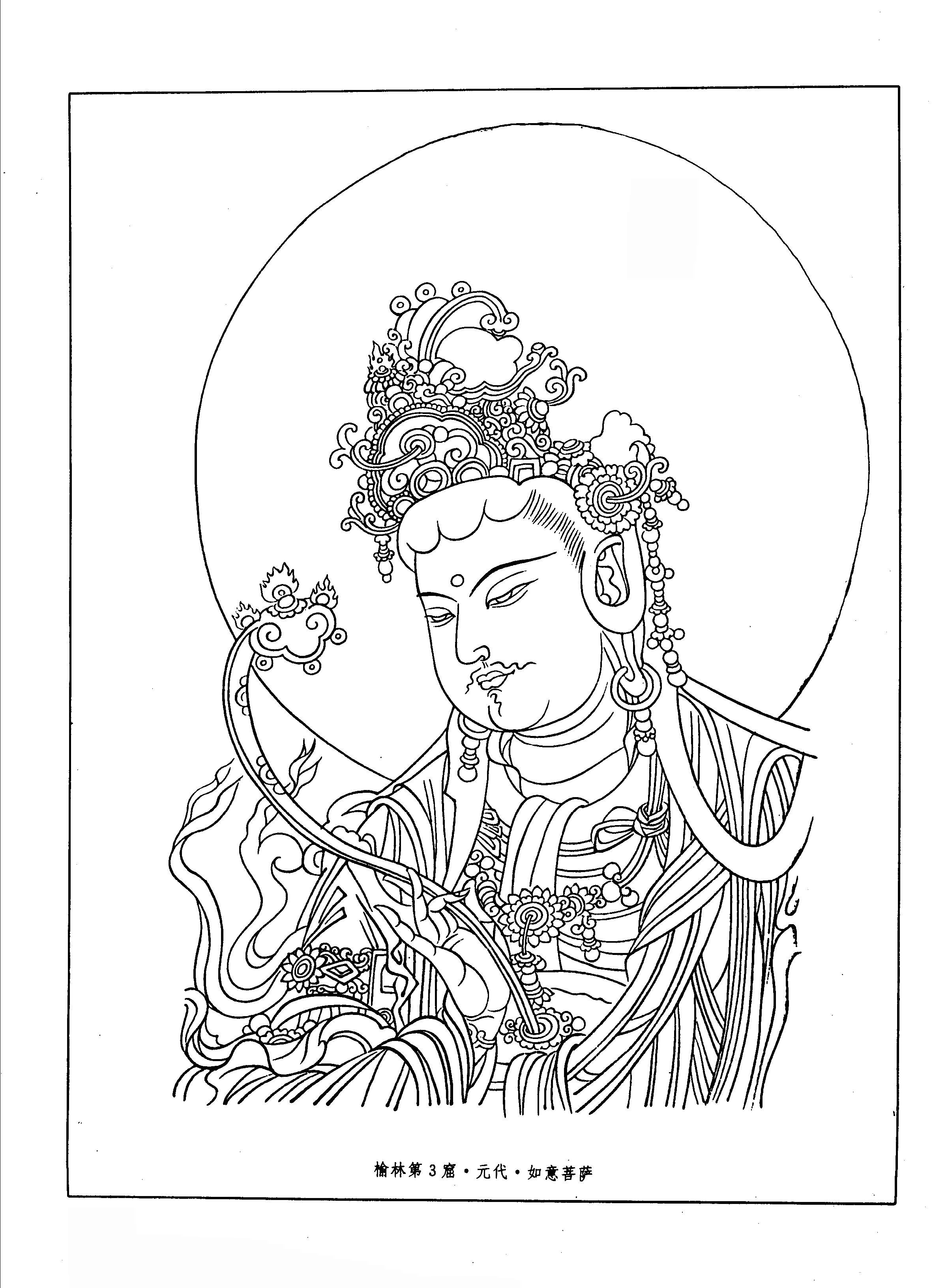 敦煌菩萨白描图集.116.榆林第3窟.元代.如意菩萨