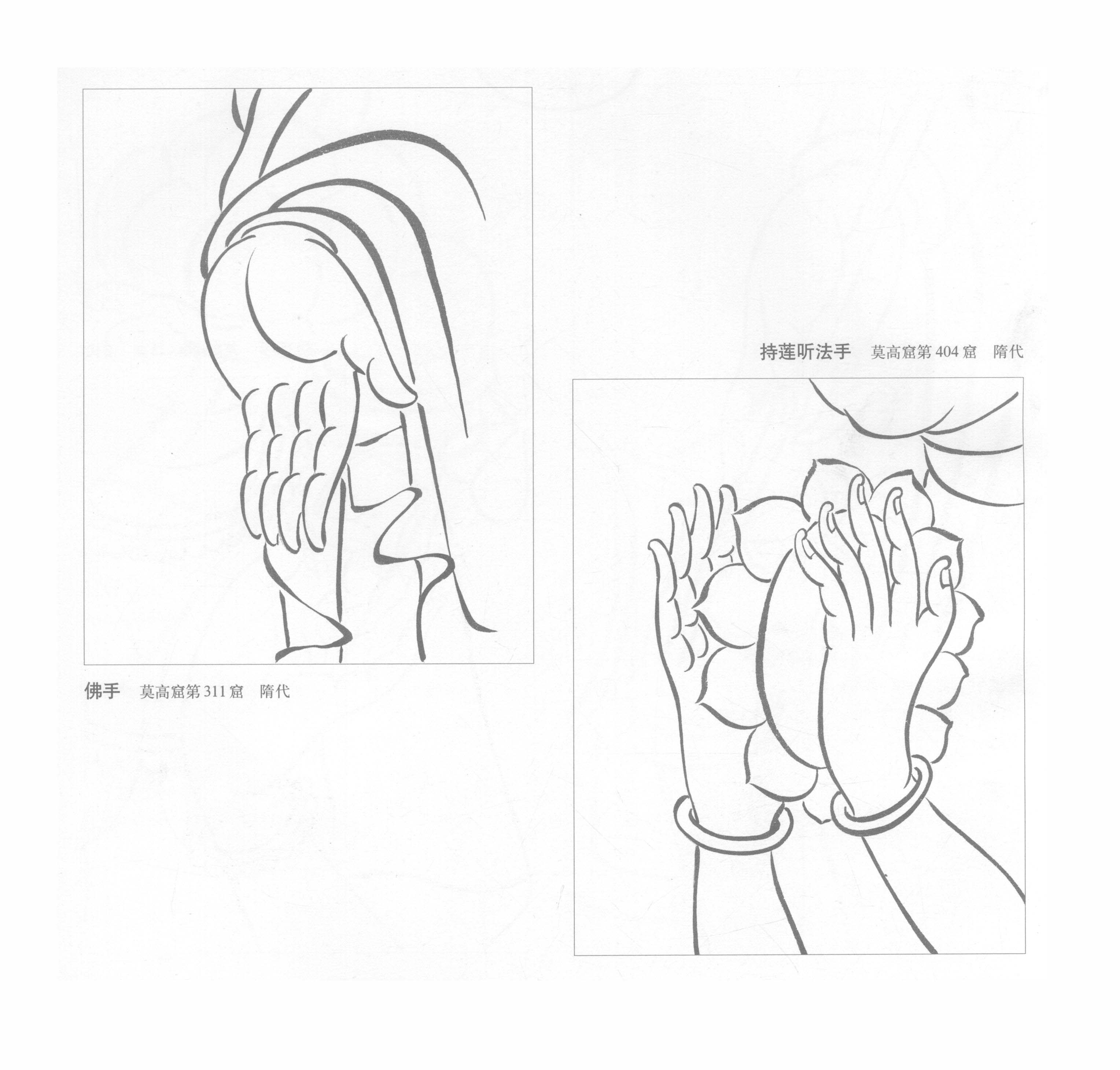 古今中外绘画和雕塑艺术作品中,关于“手”的艺术表现形式非常多,“手”帮助人类创造了世界,也帮助人们传递情感。语言、眼神、手势是人与生俱来的三个交流信息的工具,在绘画中,手的刻画难度不亚于五官,因为画好一双手要合理安排好指、腕、臂等十多个元素。敦煌壁画里的手不但用线条贯穿了每一个元素,还极尽传情达意之能事,每一双(只)手都表达了各自不同的情态。