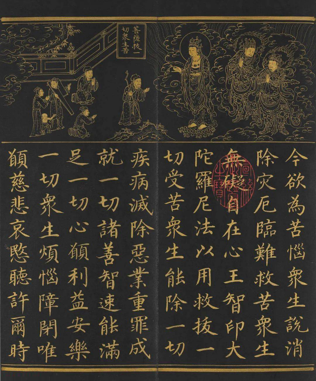 明人金字楷书《佛顶心大陀罗尼经》册,大明宣德四年(1429)九月二十四日制,台北故宫博物院藏。