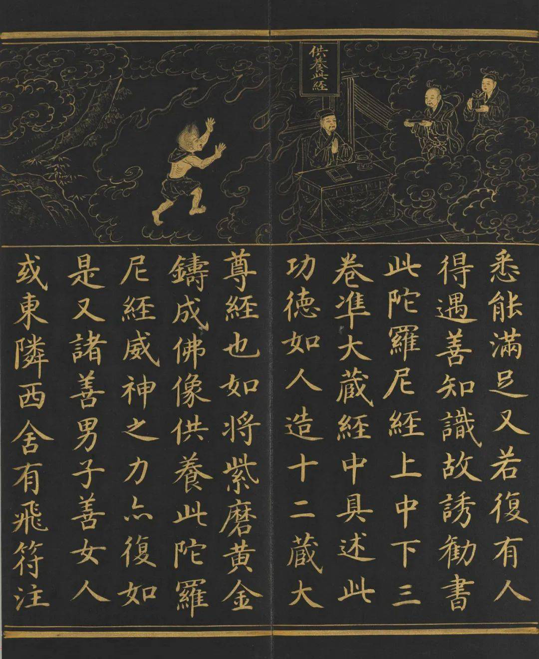 明人金字楷书《佛顶心大陀罗尼经》册,大明宣德四年(1429)九月二十四日制,台北故宫博物院藏。