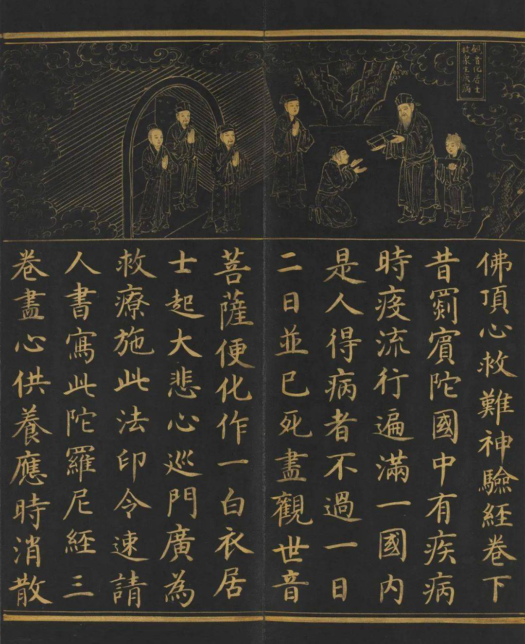 明人金字楷书《佛顶心大陀罗尼经》册,大明宣德四年(1429)九月二十四日制,台北故宫博物院藏。