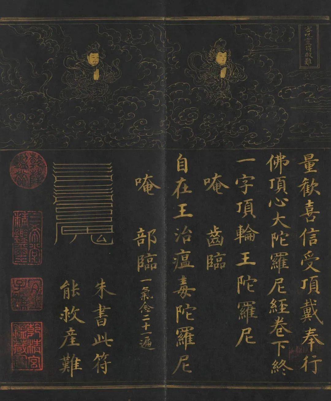 明人金字楷书《佛顶心大陀罗尼经》册,大明宣德四年(1429)九月二十四日制,台北故宫博物院藏。