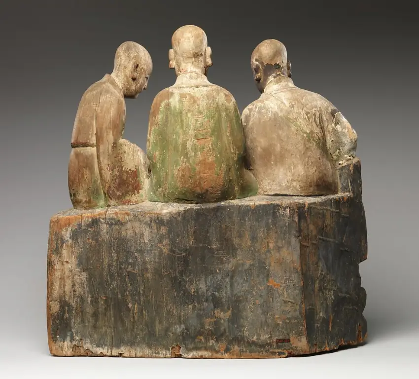 明末_彩绘木雕_三罗汉(背面) 美国大都会博物馆藏