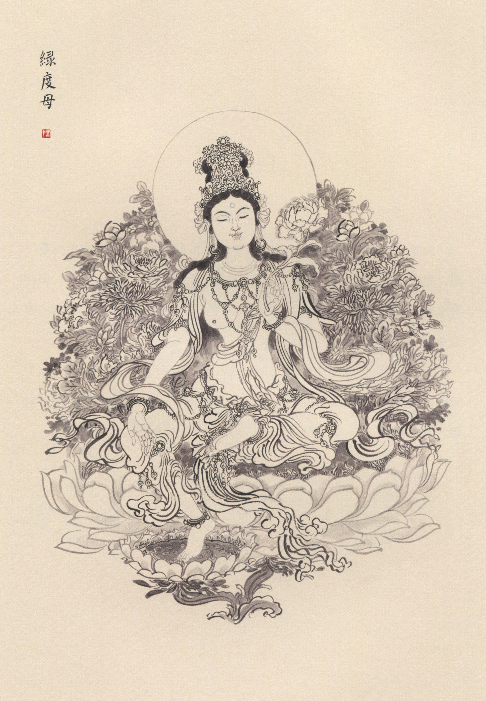 度母,全称圣救度佛母,又称多罗菩萨、 多罗观音,为密宗观世音菩萨化身。 主要有二十一度母, 以绿度母为主尊一 一能救八种苦难, 即狮难、 象难、蛇难、 火难、 水难、 牢狱难、 贼难、非人难, 故又称 “救八难度母”; 亦能转“贪、 嗔、 痴、 慢、 疑” 五毒中 “疑” 为 “究竟圆满” 的智慧; 更有护持妇、幼功德。 念其 “心咒”, 能消除一切众生的烦恼痛苦, 满足一切众生愿求, 命终往生极乐。因其救度之迅速、 摧魔之勇猛,故又称 “救度速勇母”。