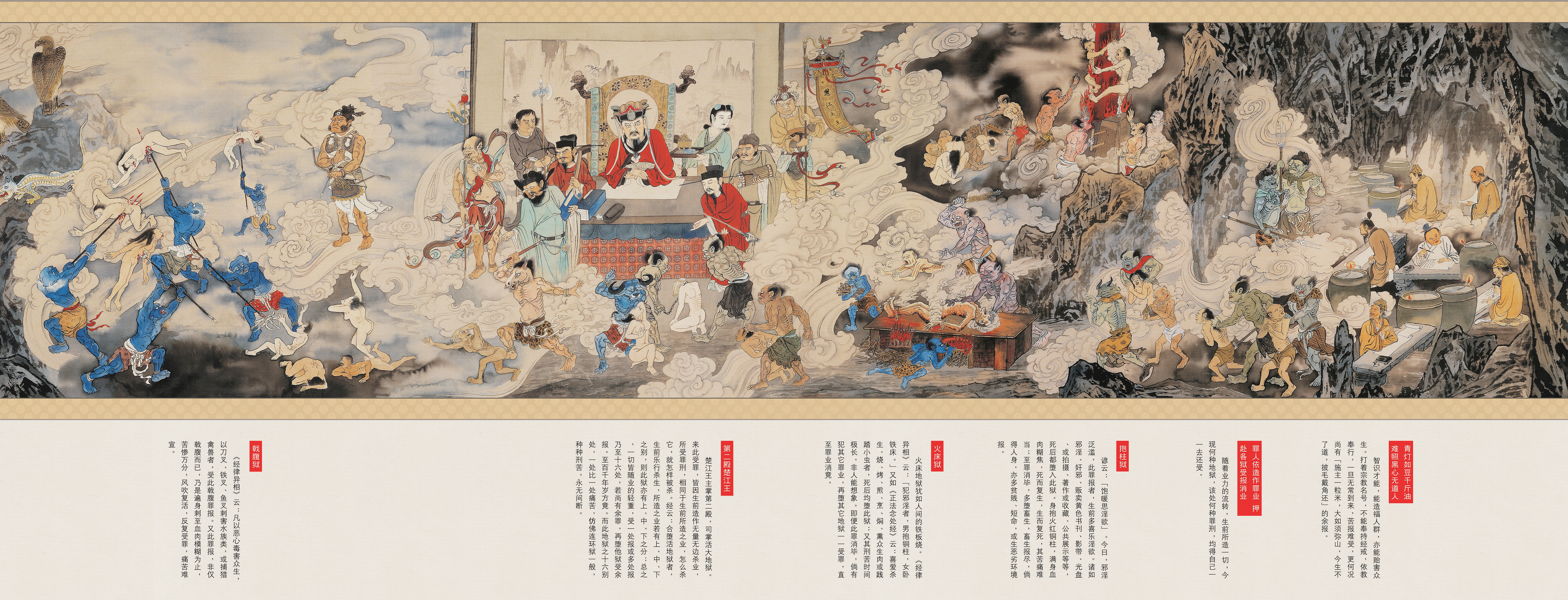 《地狱变相图》就是介绍人堕地狱受种种罪报之真相,同时也说明地狱果报全是自作自受,不是阎罗天子所定的罪。故我们深深期望浏览本图之后,能唤醒大家明白得人身之可贵,起心动念造作罪业堕地狱之可怕。故经云:真诚发露忏悔,即可远离罪报,愿我们一起共勉之。
