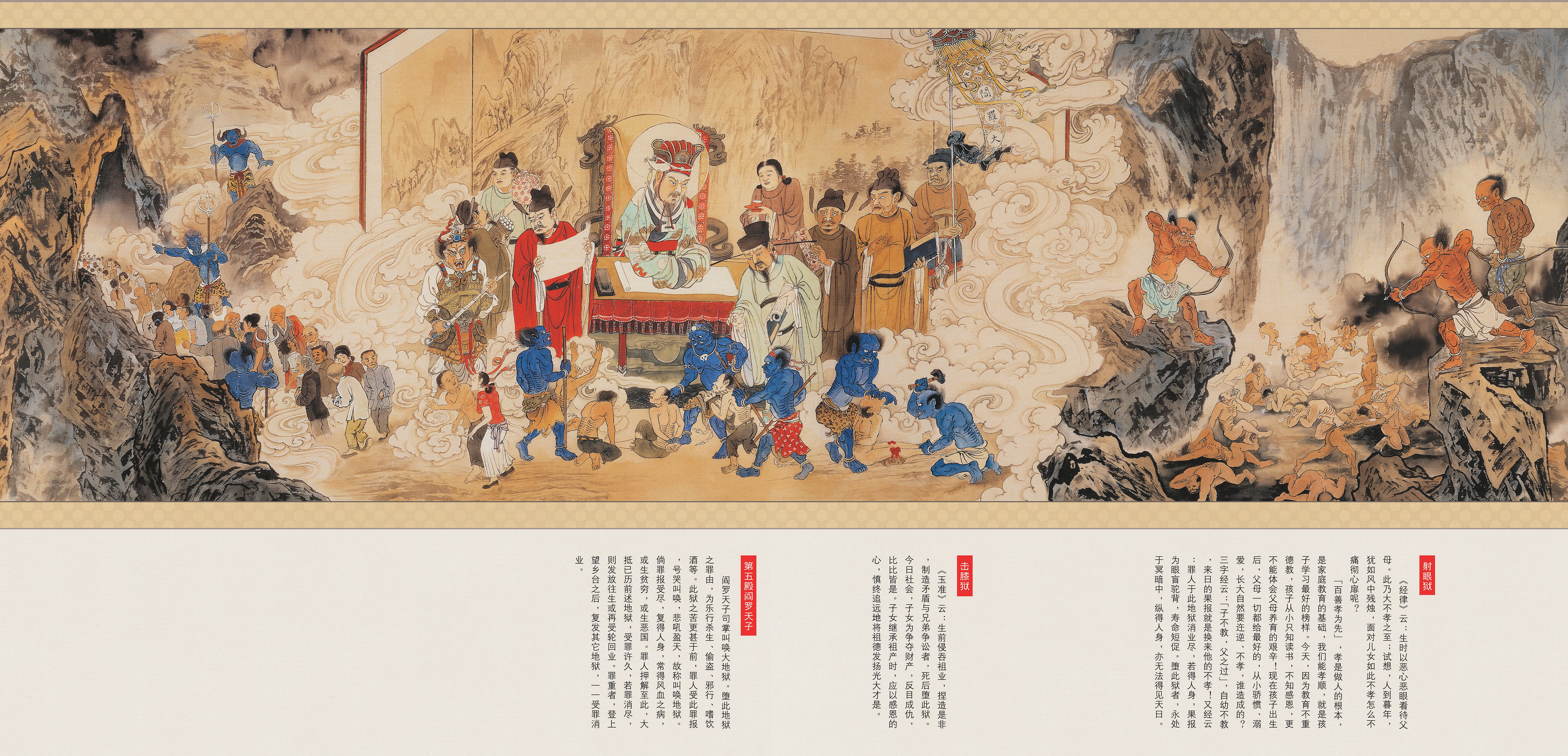 《地狱变相图》就是介绍人堕地狱受种种罪报之真相,同时也说明地狱果报全是自作自受,不是阎罗天子所定的罪。故我们深深期望浏览本图之后,能唤醒大家明白得人身之可贵,起心动念造作罪业堕地狱之可怕。故经云:真诚发露忏悔,即可远离罪报,愿我们一起共勉之。