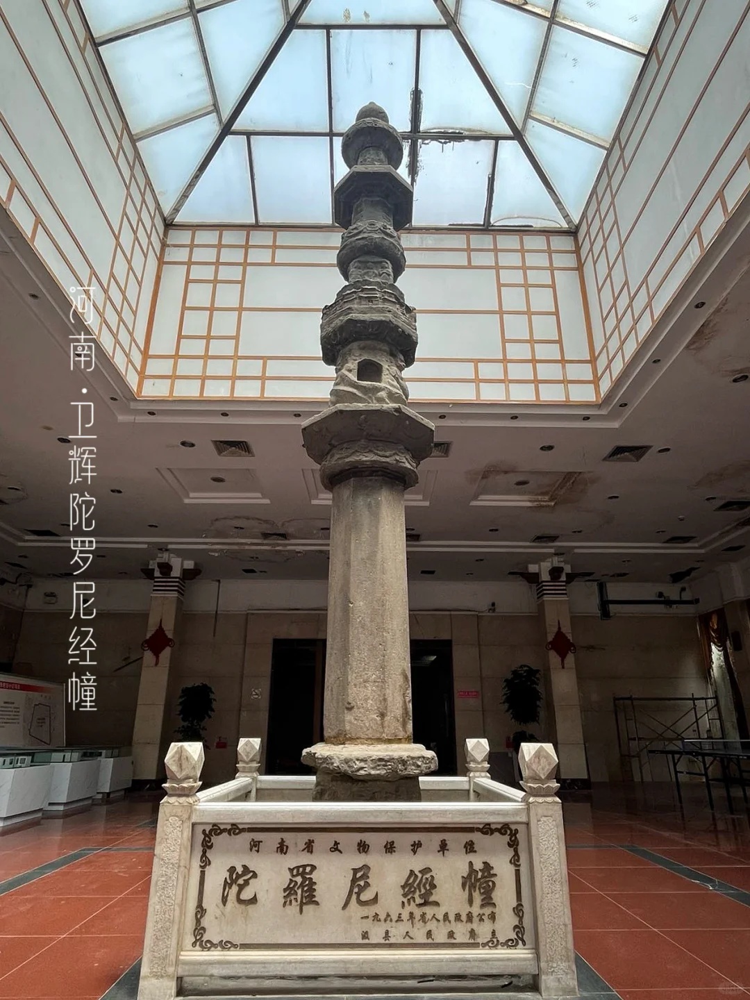 陀罗尼经幢现位于卫辉市老城区卫辉宾馆院内,(原汲县宁境寺内),为五代后晋开运二年(公元945年),创建宁境院时所镌造。整座建筑高6.50米,全部用青石雕造,造型挺拔俊秀,由幢座,幢身及幢顶三部分呵成,每层面积由下向上逐层递减,1963年被公布为河南省第一批重点文物保护单位。2013年入选第七批全国重点文物保护单位。