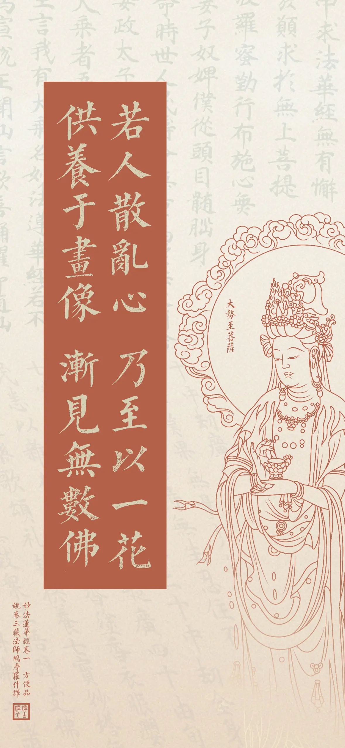 法华经偈颂:若人散乱心.乃至以一花.供养于画像.渐见无数佛