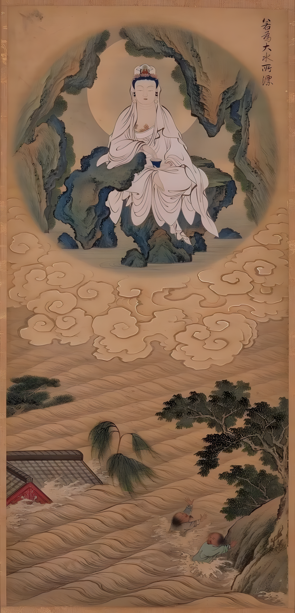 法华经普门品_观音菩萨三十三身_21.若为大水所漂_1150x2382_meet.fo