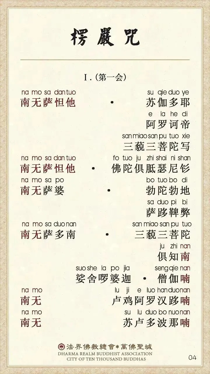 法界佛教总会万佛圣城《楞严咒背诵卡》双色拼音版_2_04.第一会1