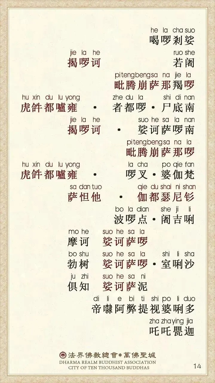 法界佛教总会万佛圣城《楞严咒背诵卡》双色拼音版_2_14.第二会2