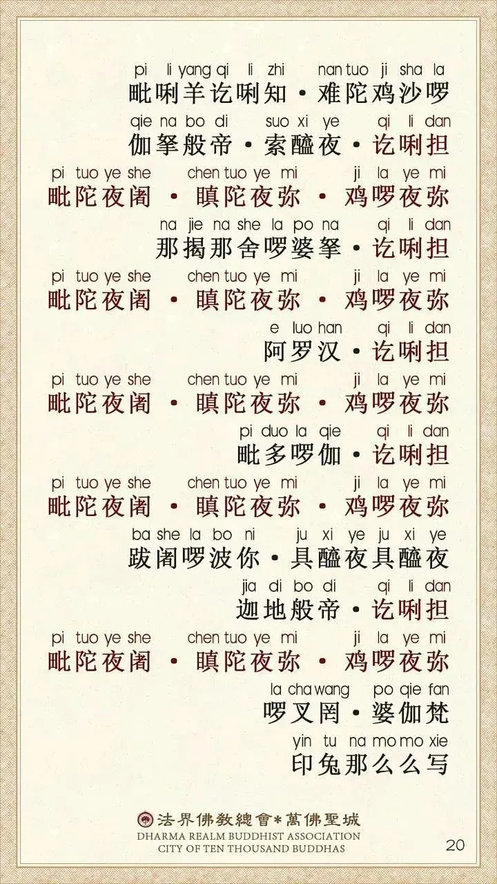 法界佛教总会万佛圣城《楞严咒背诵卡》双色拼音版_2_20.第三会6
