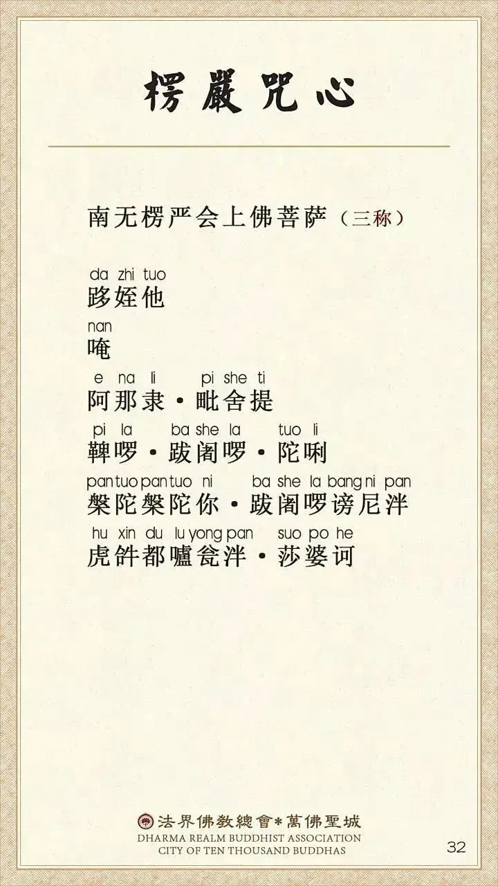 法界佛教总会万佛圣城《楞严咒背诵卡》双色拼音版_2_32.《楞严咒咒心》