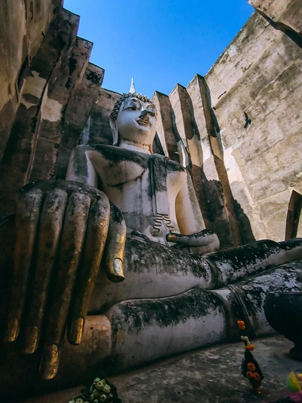 泰国素可泰古城的西春寺(Wat Sri Chum)始建于公元13世纪,在寺院一座15米高的石柱中隐藏了一尊身带降魔印的神秘佛像,通过石柱上的碑文可以知道它被称为Phra Atchana,意为“无所畏惧佛”,也就是大乘佛教中的不动如来。