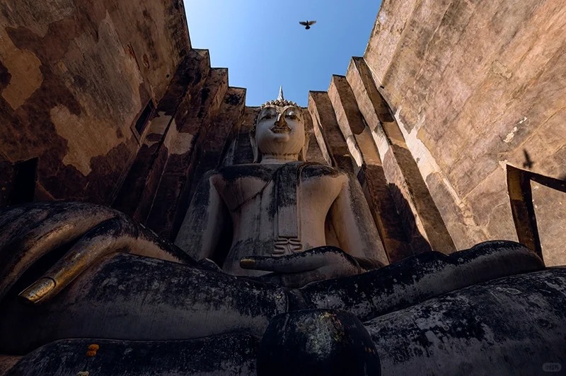泰国素可泰古城的西春寺(Wat Sri Chum)始建于公元13世纪,在寺院一座15米高的石柱中隐藏了一尊身带降魔印的神秘佛像,通过石柱上的碑文可以知道它被称为Phra Atchana,意为“无所畏惧佛”,也就是大乘佛教中的不动如来。