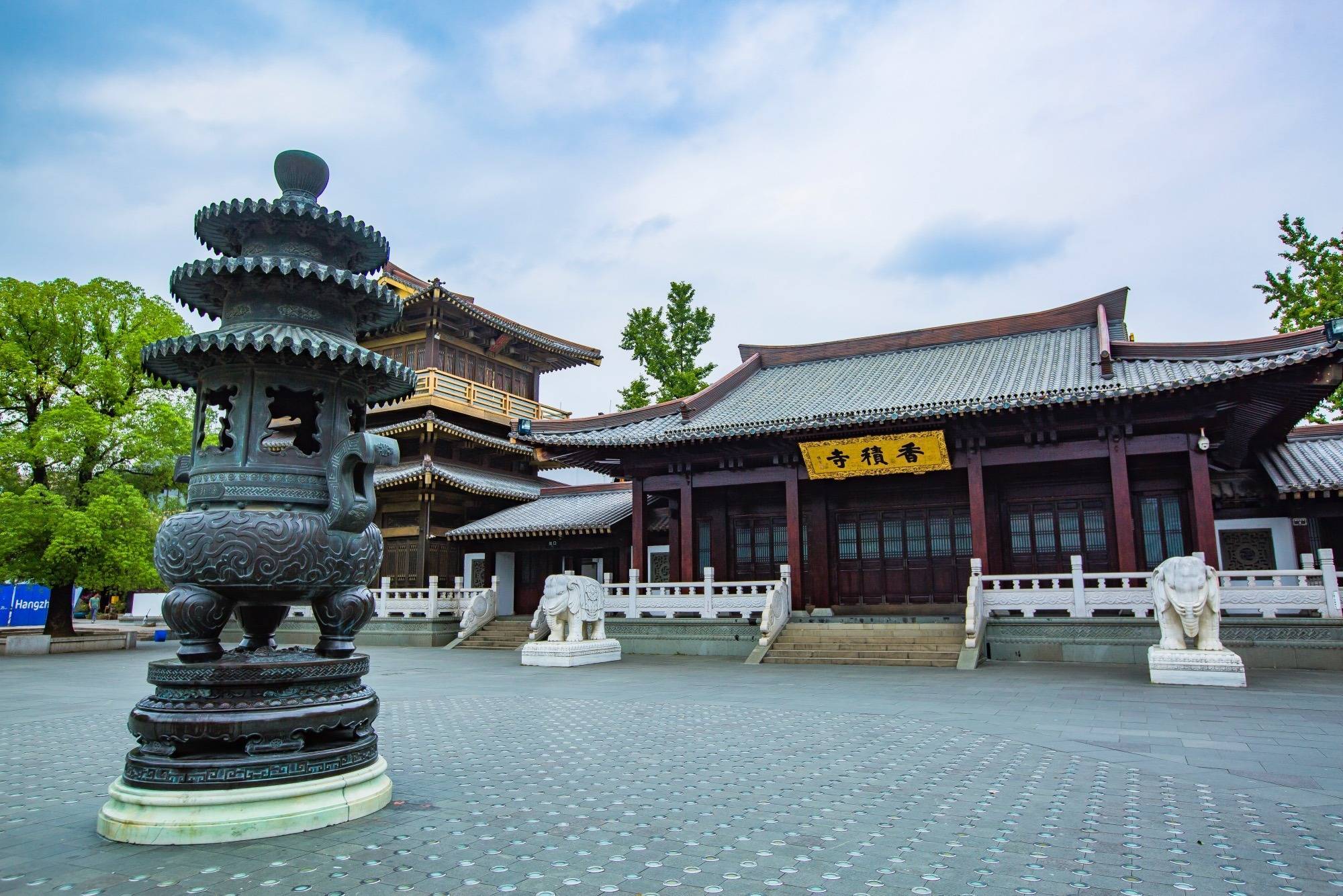 香积寺,位于浙江省杭州市拱墅区香积寺巷1号,始建于北宋太平兴国三年(978年),原名兴福寺,后宋真宗赐名“香积寺”,于2010年2月7日复建完成并开放,占地面积16855平方米,主供大圣紧那罗王菩萨,是中国唯一供奉监斋菩萨的寺庙。 香积寺地上总建筑面积13150平方米,从牌坊进入,依次为天王殿、大圣紧那罗王殿、大雄宝殿、藏经阁,寺内两侧有观音殿、文殊殿、普贤殿、钟鼓楼等建筑,各类造像34尊。 1989年,香积寺内的香积寺石塔由浙江省人民政府公布为浙江省第三批省级文物保护单位。