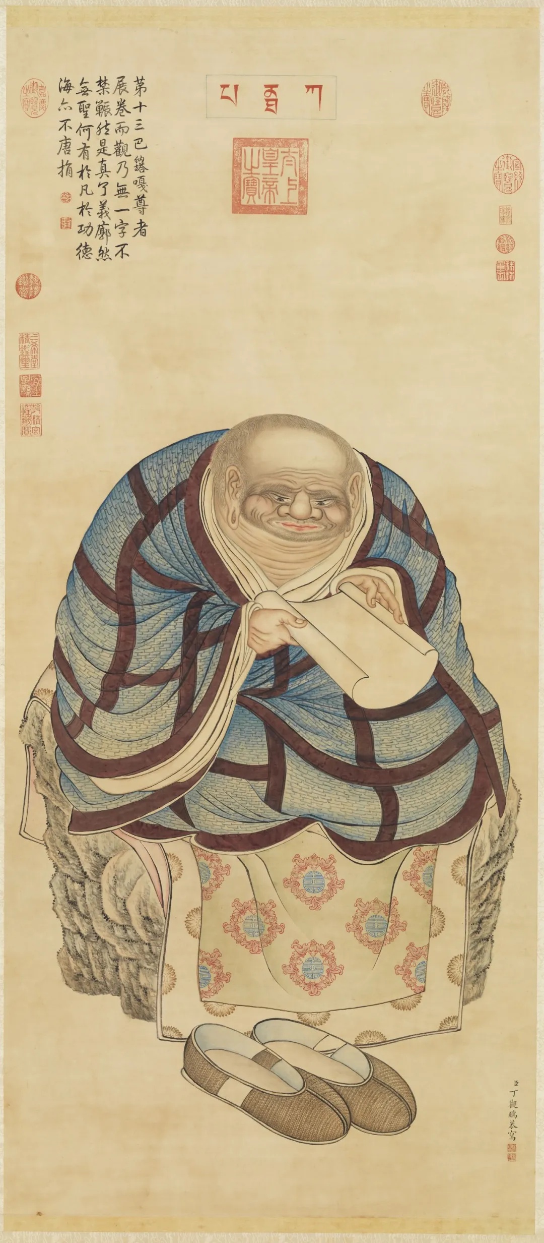 丁观鹏,一个活跃于康熙末期至乾隆中期的宫廷画家。他擅长人物、道释、山水等多种题材,尤其以佛教题材的画作最为人称道。