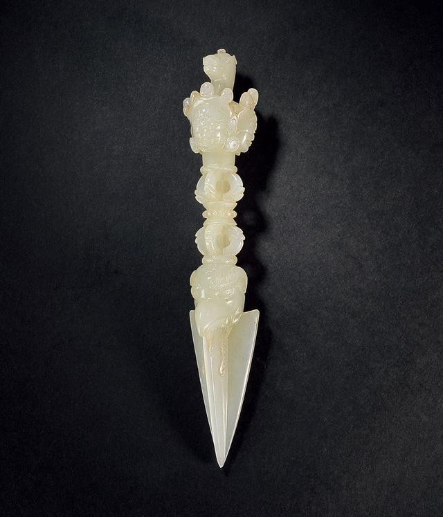 金刚橛,梵文译为vajvakilaka,音译为“伐迦罗羯罗迦”又称四方橛,和金刚杵一样在古印度时期是当做武器使用的。后融入古印度佛教流传到西藏。金刚橛的型制和匕首差不多,尖刃头加握柄。但与匕首的区别是金刚橛普遍握柄较长刃头较短。