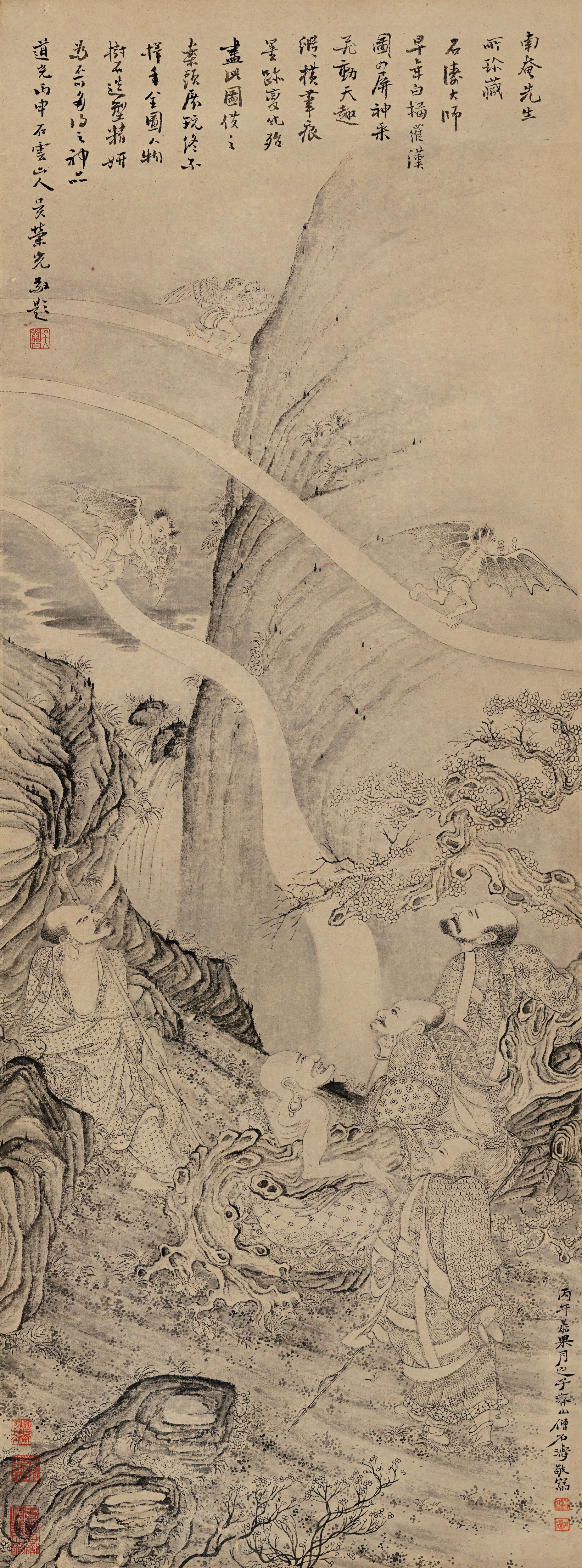 清代_石涛_山水人物四屏(罗汉图)_01【大图编号-A1224】_1850x4980_meet.fo