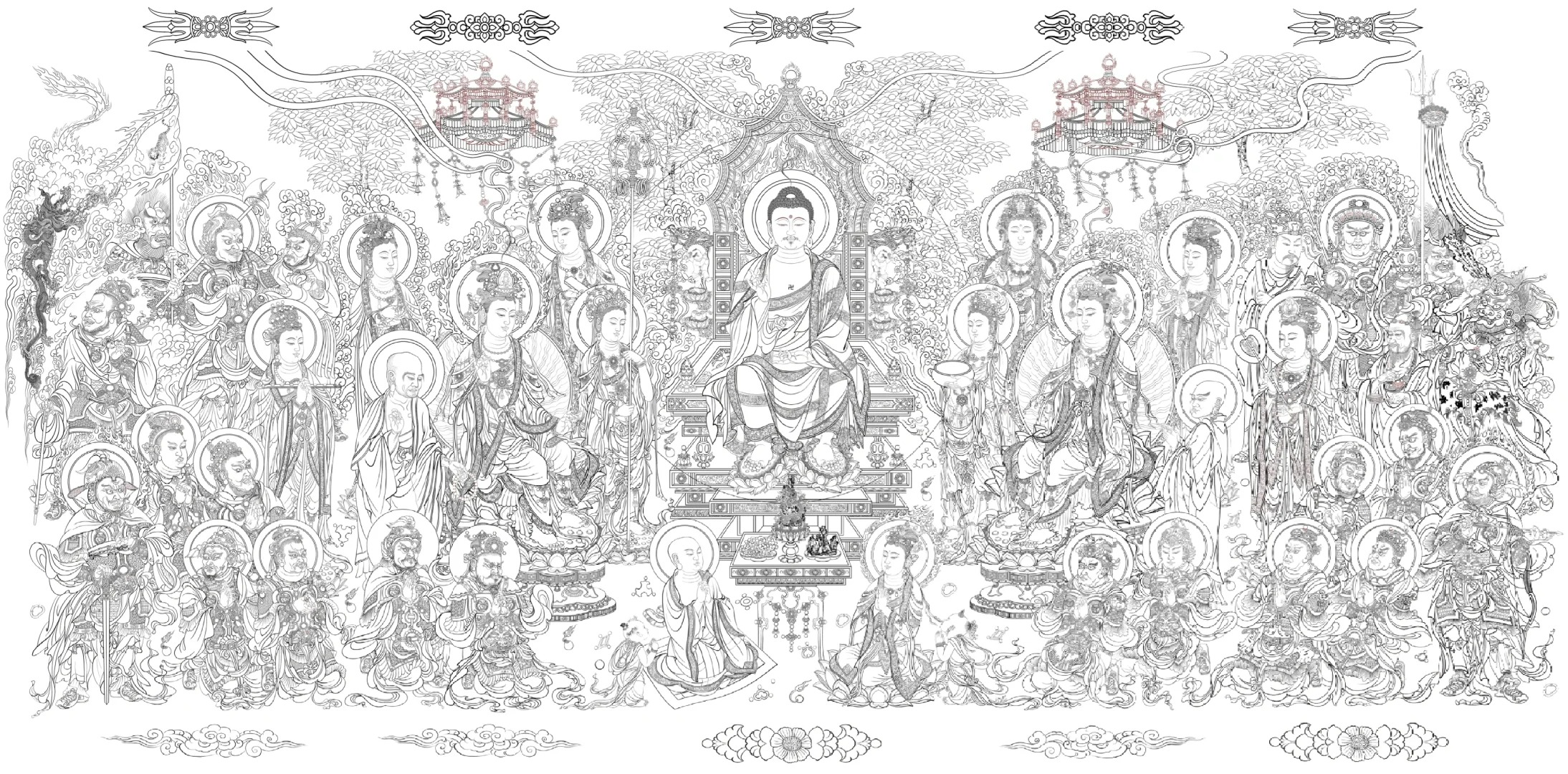 白描线稿《药师琉璃光佛会图》临摹宋代张胜温《梵像卷》药师琉璃光佛佛会图._2188x1080_meet.fo